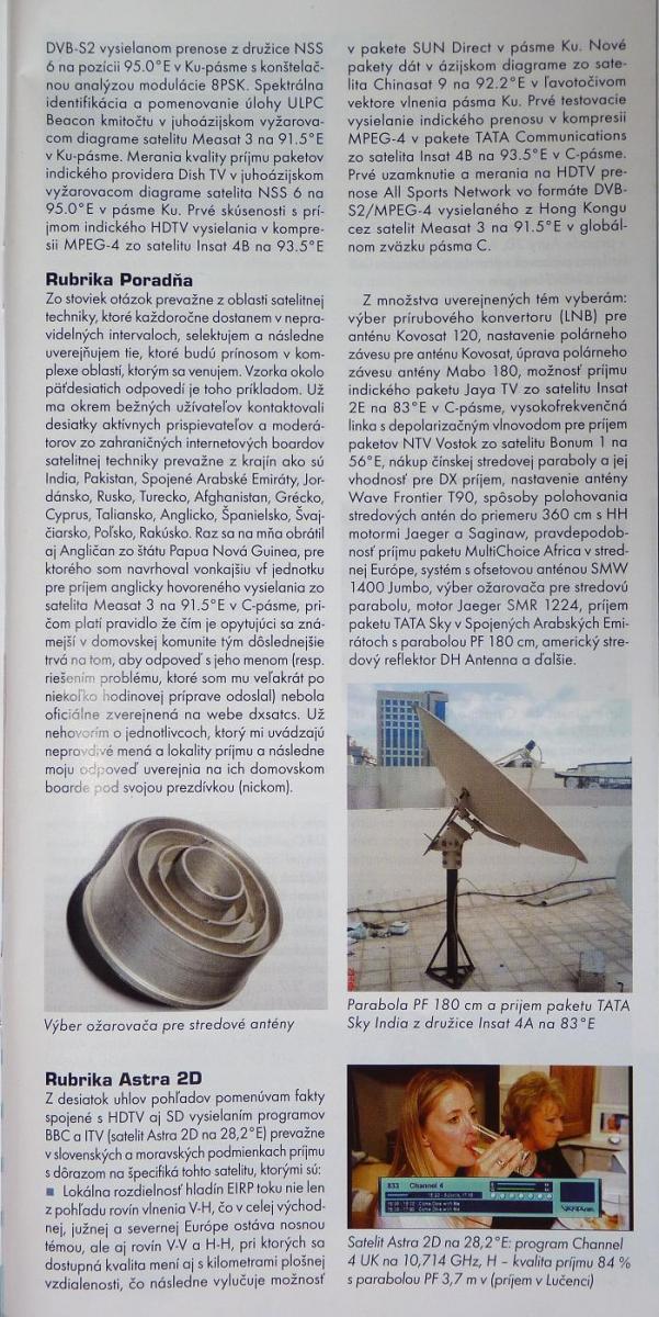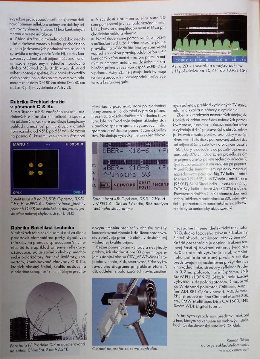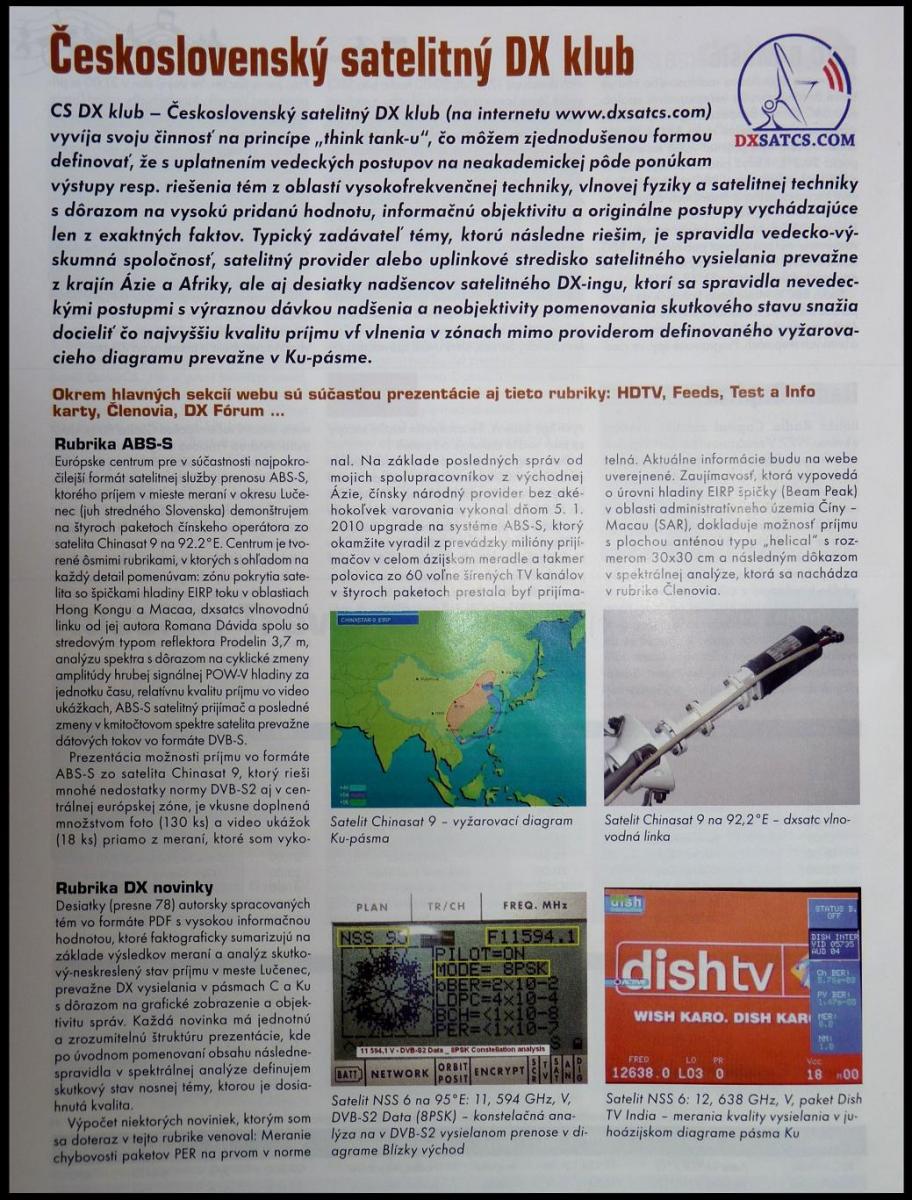 20.4.2010 - Roman Dávid ako autor a zakladateľ Think Tanku Czech & Slovak DX Satellite Club na www.dxsatcs.com predstavuje svoje európske centrum pre satelitný príjem v pásmach C & KU na stránkach časopisu SAT & DVB-T magazín ....