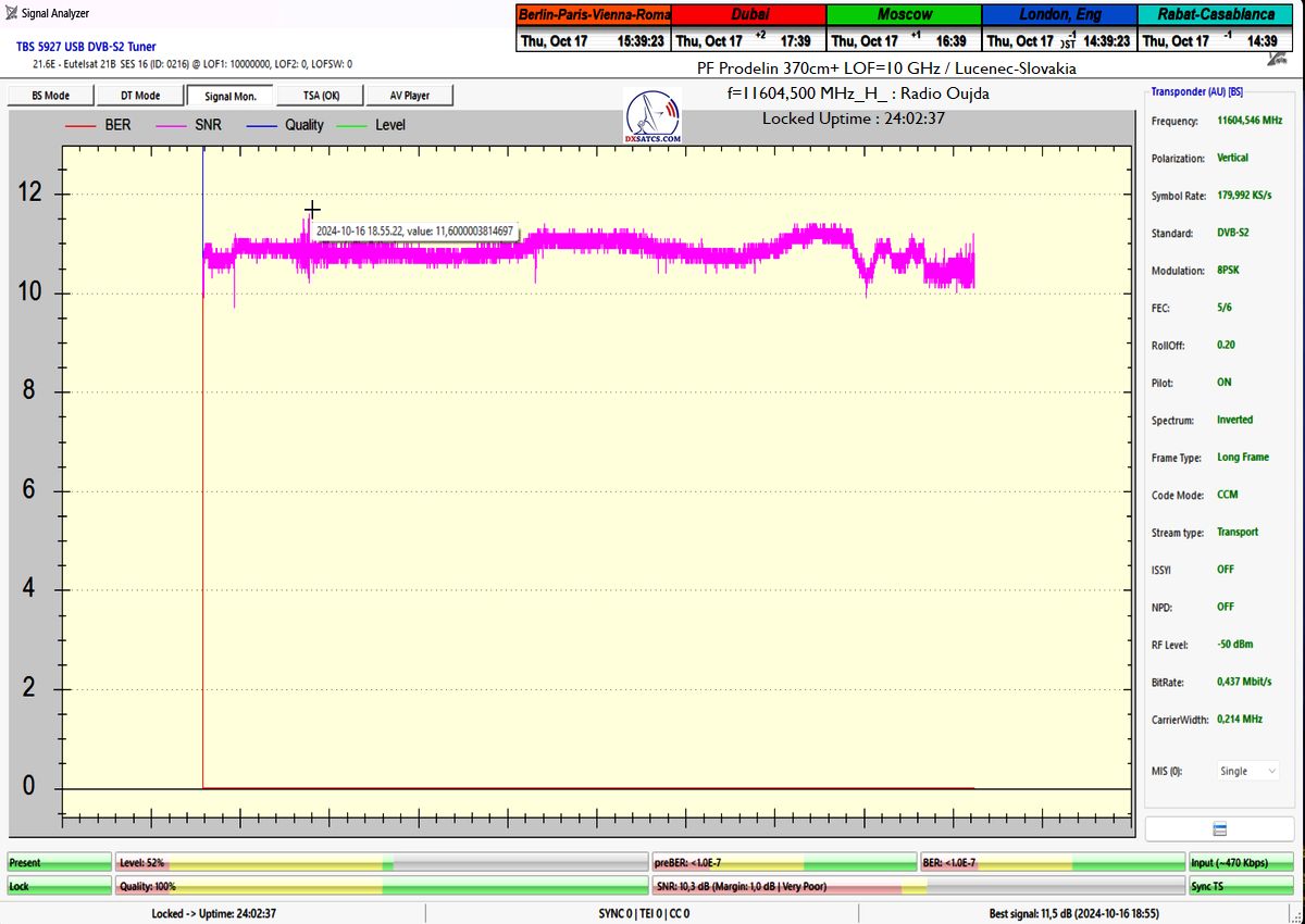 in quality to around the noise threshold (Q=20%) recorded on 15.10.2024 at 6:07 a.m., I demonstrably achieved 100% reception stability without a single