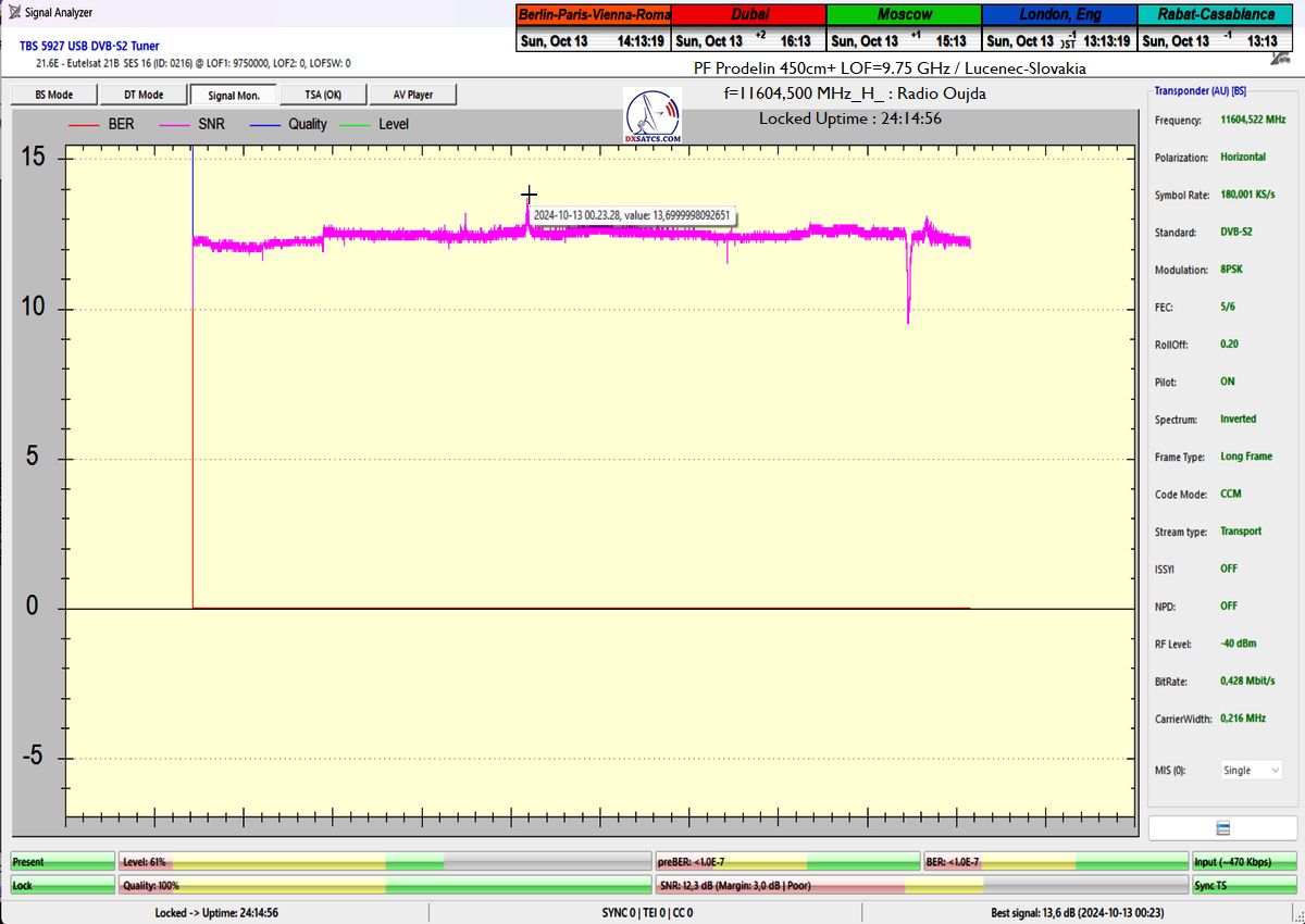 ►+27 hodín _ Priebežný stav v signálnom monitoringu dňa 14.10.2024 a online video ukážky z vysielania Rádia Oujda_ TSA OK