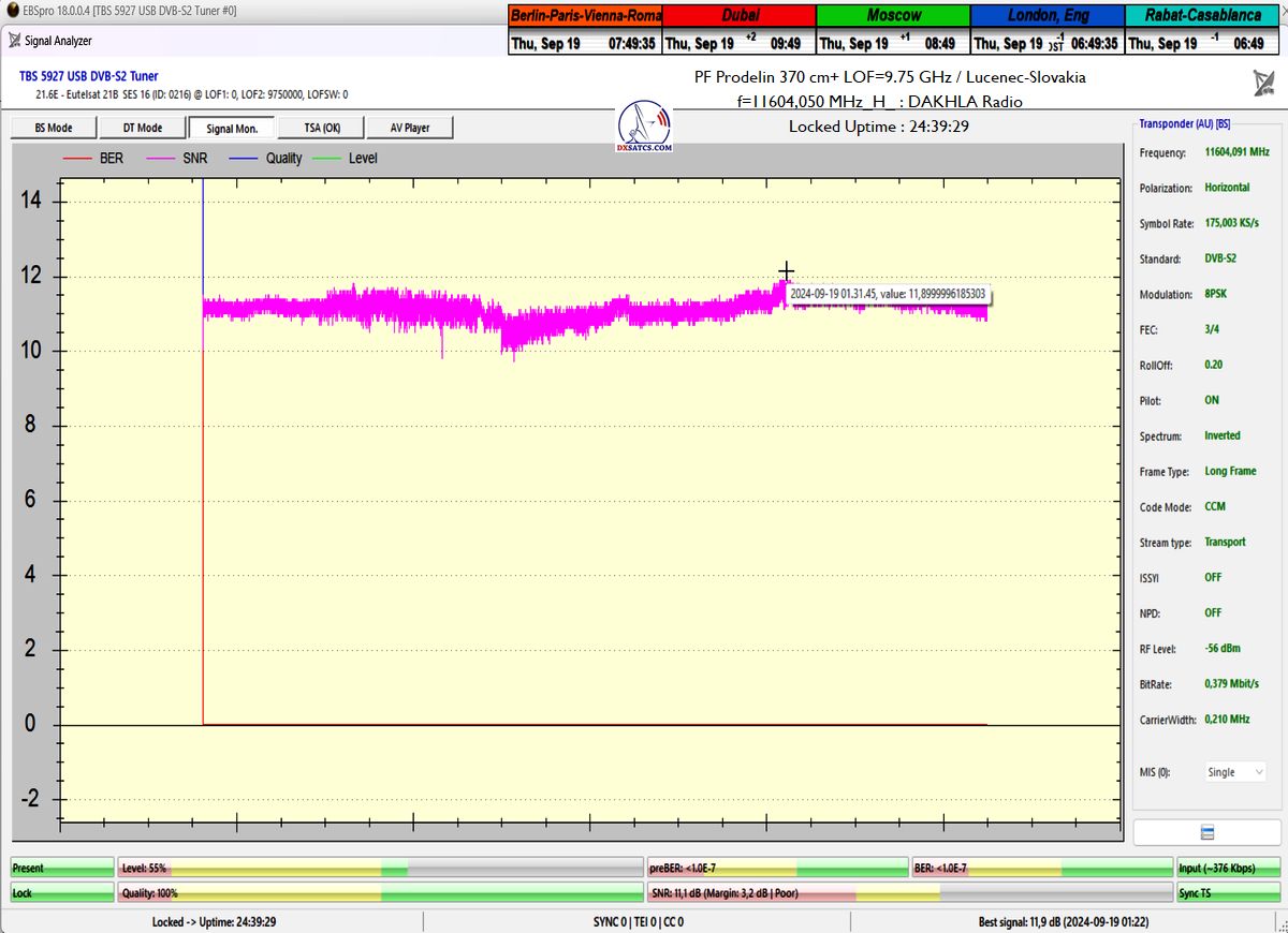 >Eutelsat 21B at 21.5°E_Low Symbol Rate>SR=175 ksym/s in satellite reception practice & Radio Dakhla <