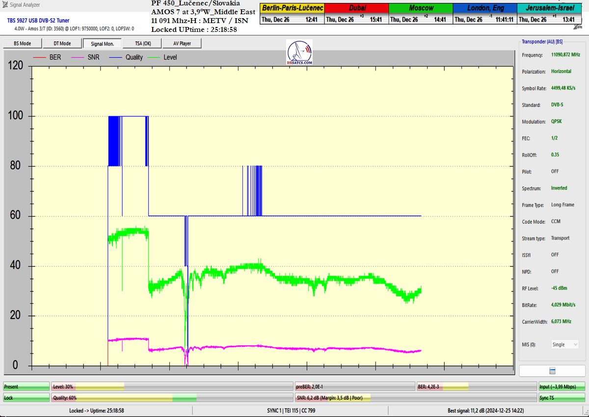 dočasného výskytu výkonovej anomálie,tak typickej pri príjme z družice Amos 7_Middle East beam. ►Teraz dokážem že moje tvrdenia sa zakladajú na nespochybnitelných dôkazoch.V poradí druhý výskyt výkonovej anomálie za 5 dní od 25 do 30.12.2024.