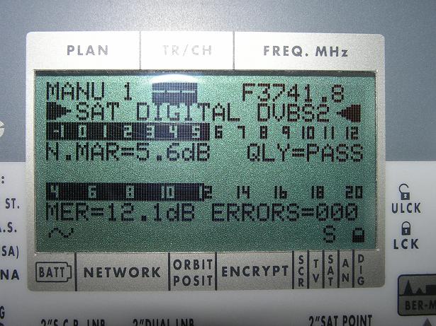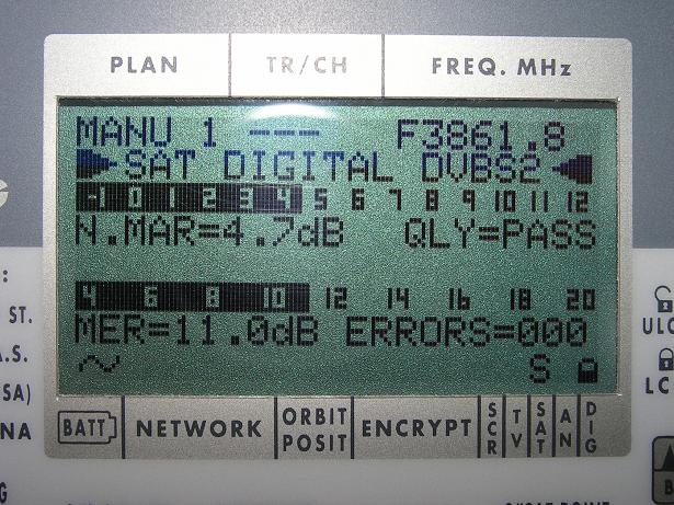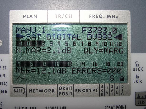 3 782 V : DVB-S2/8PSK Data - DVB-S2 PER / Packet Error Rate/ value for each data carrier was less than 1x10-7 which means