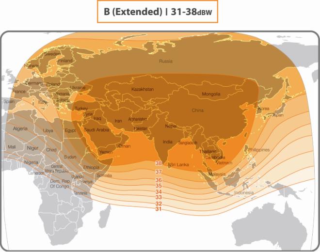 ABS 1 at 75.0°E footprint : A+B SPOT