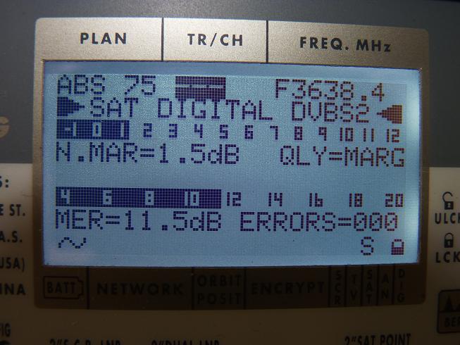 ABS 1 at 75.0°E _ footprint A : 3 638 V DVB-S2/8PSK Data network