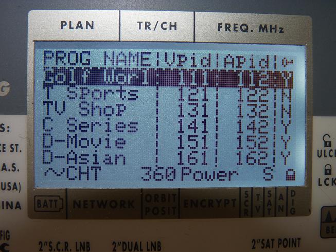 ---SR--- | ---FEC--- | ---Footprint--- | ---Antenna--- | ---Video/Encryption--- |