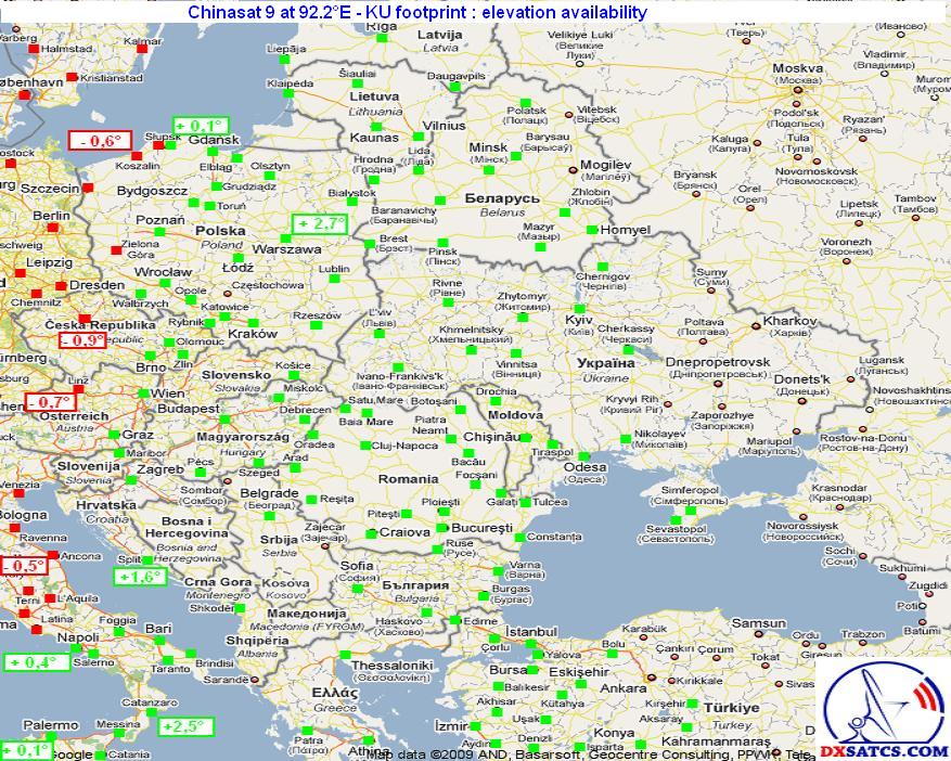 Satellite ChinaSat 9 - Zhongxing-9 - ZX-9 at 92.2°E : elevation availability