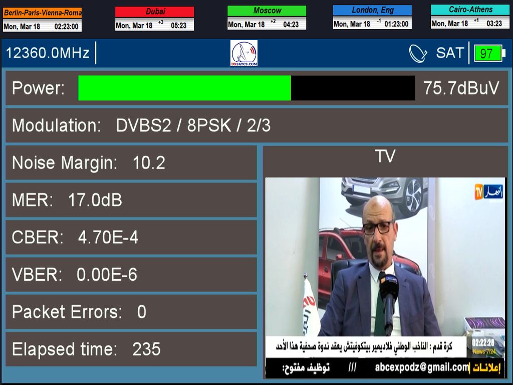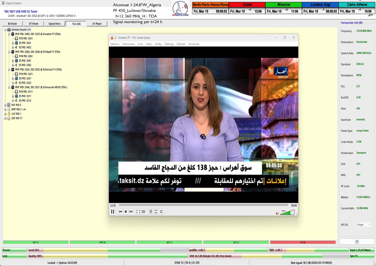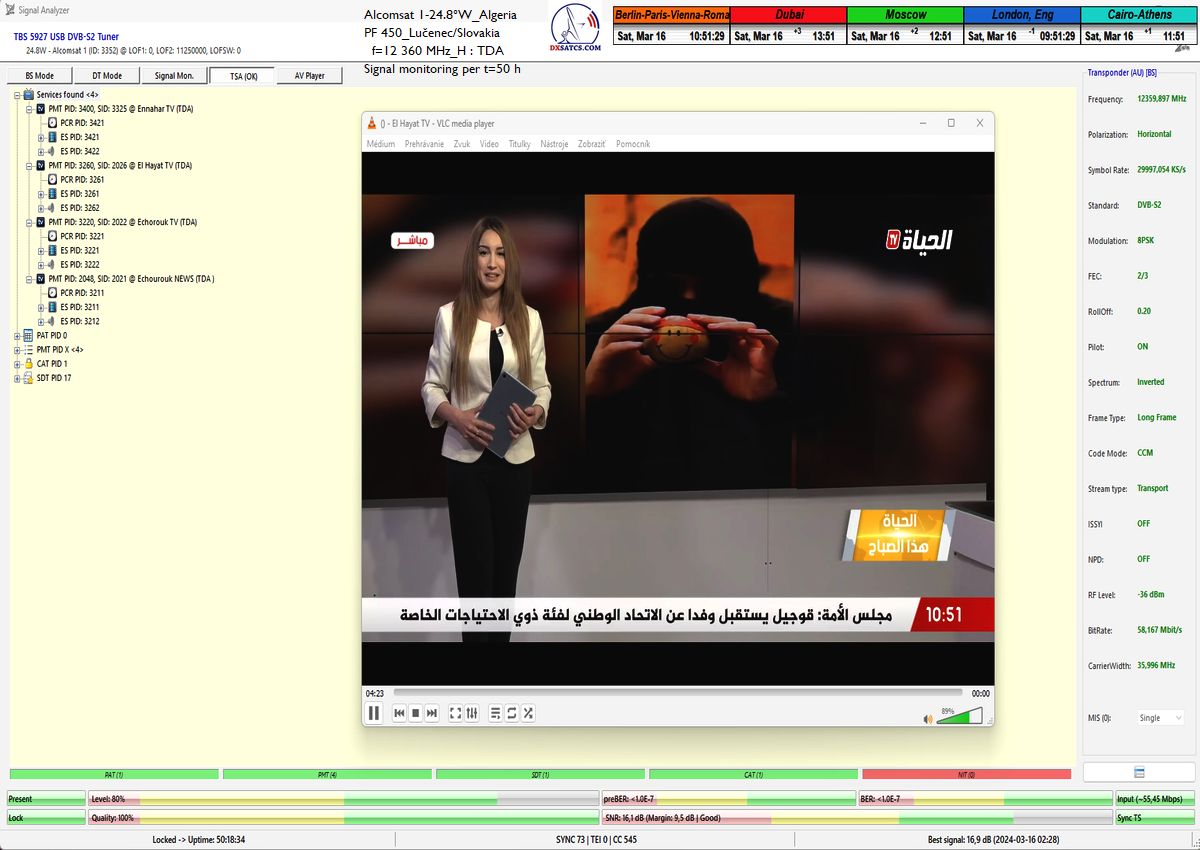 ►►Alcomsat 1 at 24.8°W-TDA Algeria : Continuous signal monitoring / Nepretržitý signálny monitoring