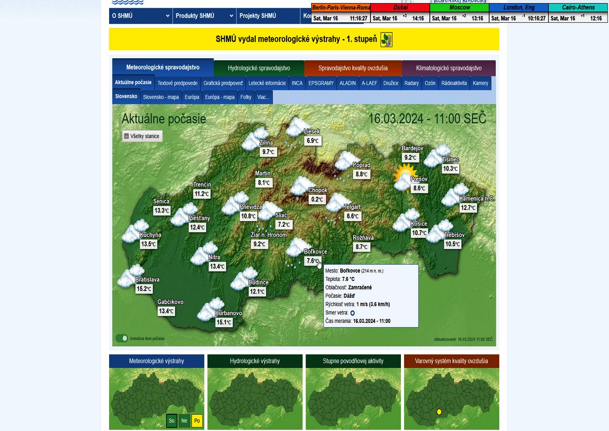 dňa 16.3.2024 dominoval nasledovný stav poveternostných podmienok : oblačno,takmer zamračené až zamračené 8/8 s dažďovými prehánkami