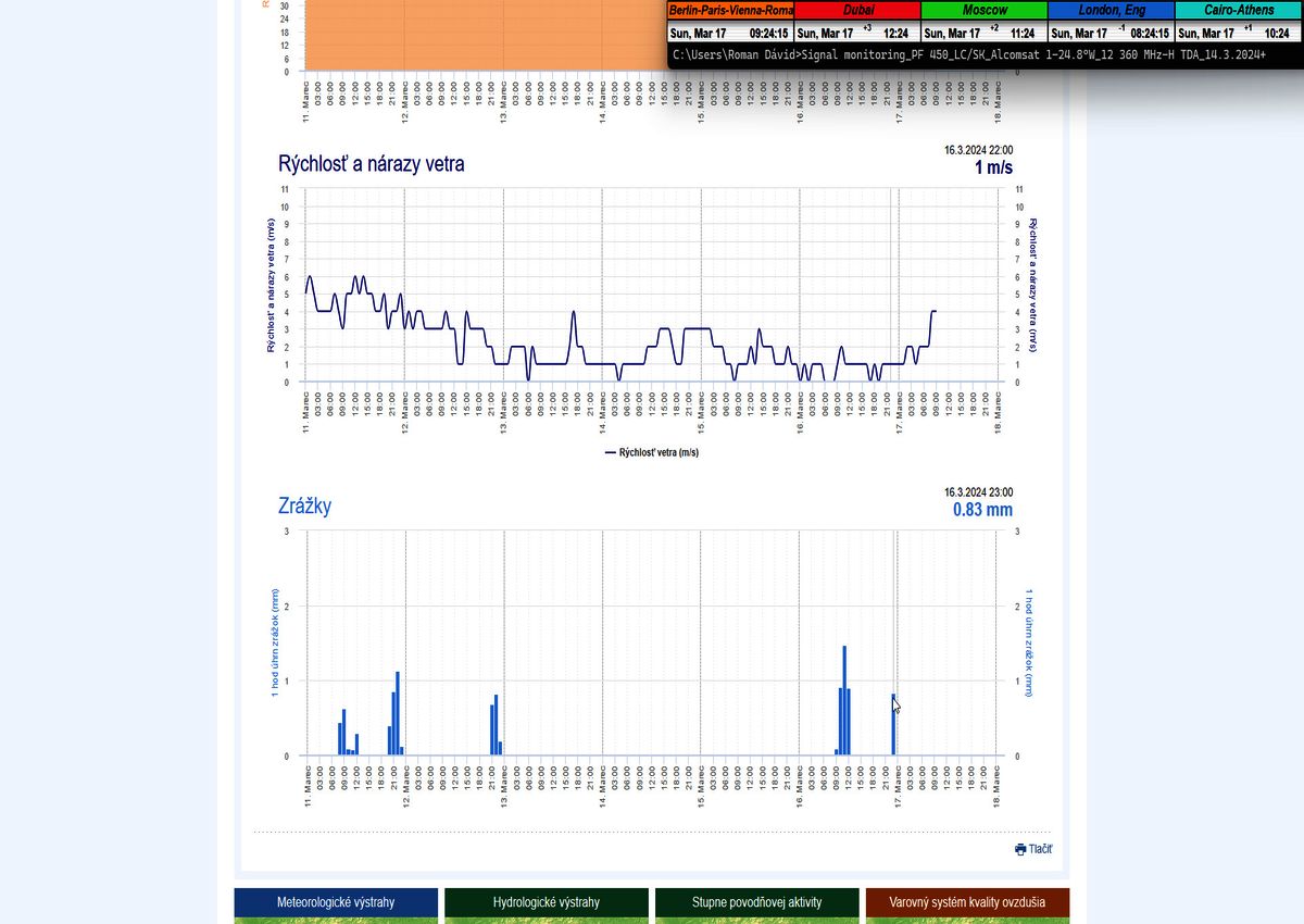 Important Notice: The undeniable correlation of timing relationships between the sudden drop in immediate quality in connection with the occurrence of ongoing rain showers,visualized in the precipitation total graph at the Boľkovce/Lučenec station,clearly proves that signal monitoring was actually conducted in the specific geographic area and not elsewhere in Europe or Africa.Everyone can verify the truthfulness of my claims in video clips after 72 hours.The internet is flooded with fraudulent posts from very active and desperate Sat DX enthusiasts with various nicknames, boasting about achievements they physically could not accomplish with their signal chain and that originated in completely different geographic areas,or just as a result of an anomaly in the form of a random peak in performance.