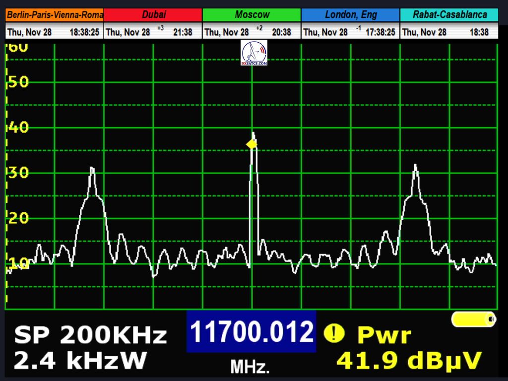 ►SK_Autor Roman Dávid definuje novú referenčnú frekvenciu a atribúty pre výber f0=10 890 MHz vo vyžarovacom diagrame Middle East konštalácie satelitov Amos 3/7 na 4,0°W pre zemepisnú oblasť Stredná Európa,potom čo došlo k frekvenčnému preskupeniu nosných a zároveň k vysokému poklesu v intenzite ich vyžiareného výkonu v okrajovej zóne stopy vyžarovacieho diagramu Stredný východ v horizontálnej polarizácii za posledné dva roky.