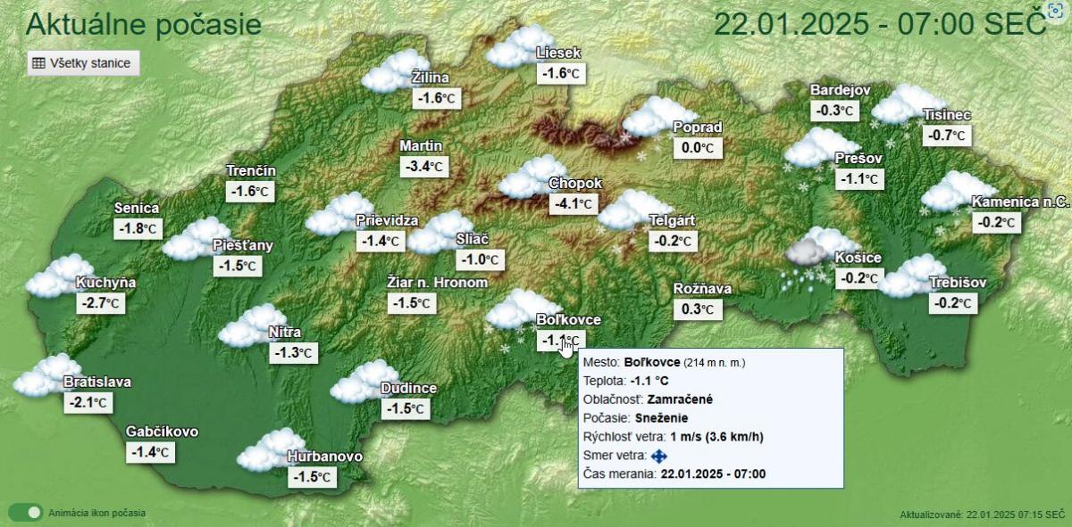 (+Aktuálny stav počasia v čase uverejnenia novinky ako dôkaz zo zdroja shmu.sk)