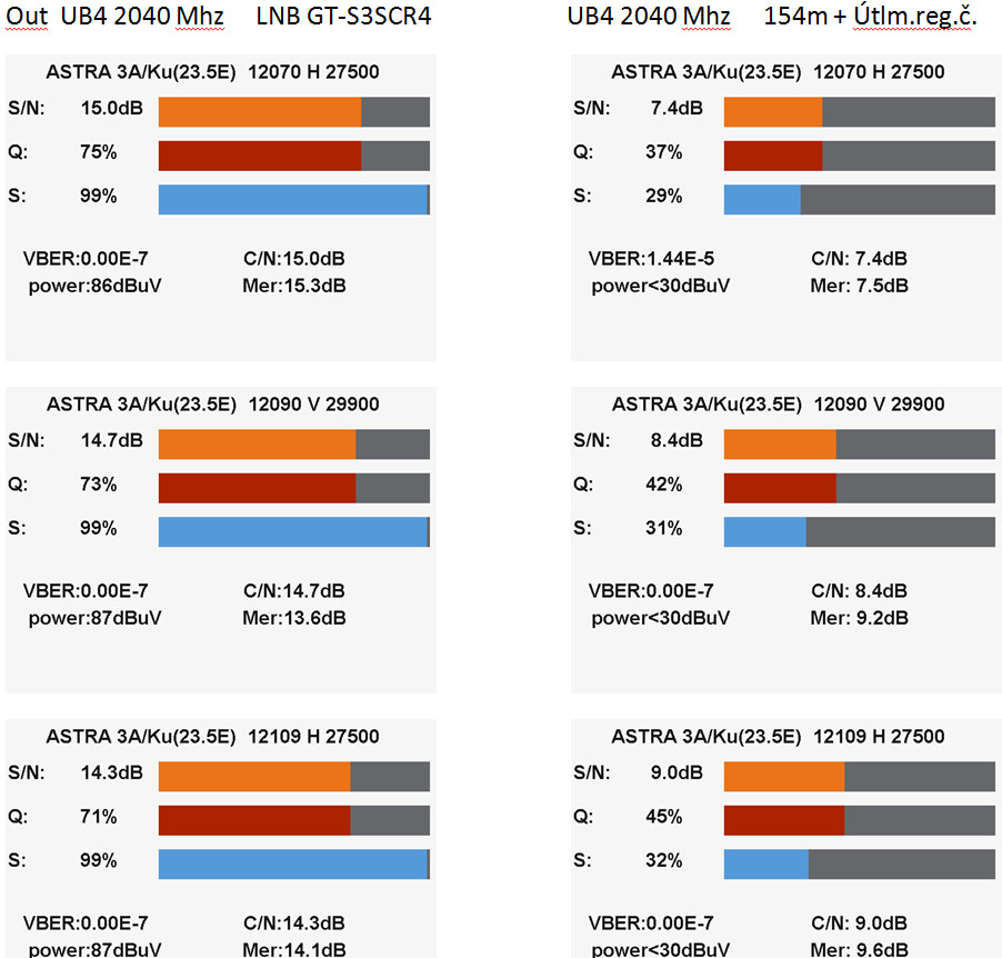 UB1 1210 MHz celková dlžka vedenia 281m UB2 1420 MHz celková dlžka vedenia 281m