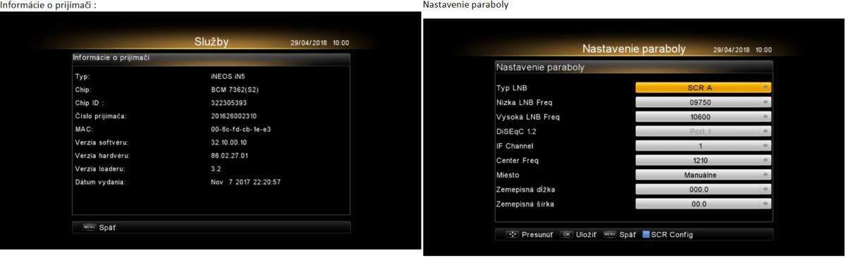 Zariadenie : Ineos IN5, Evidenčné číslo : DVB-S2 8100A00011, Verzia Firmware : 32.d6.00.d6 Nov. 6 2017 01:36:46