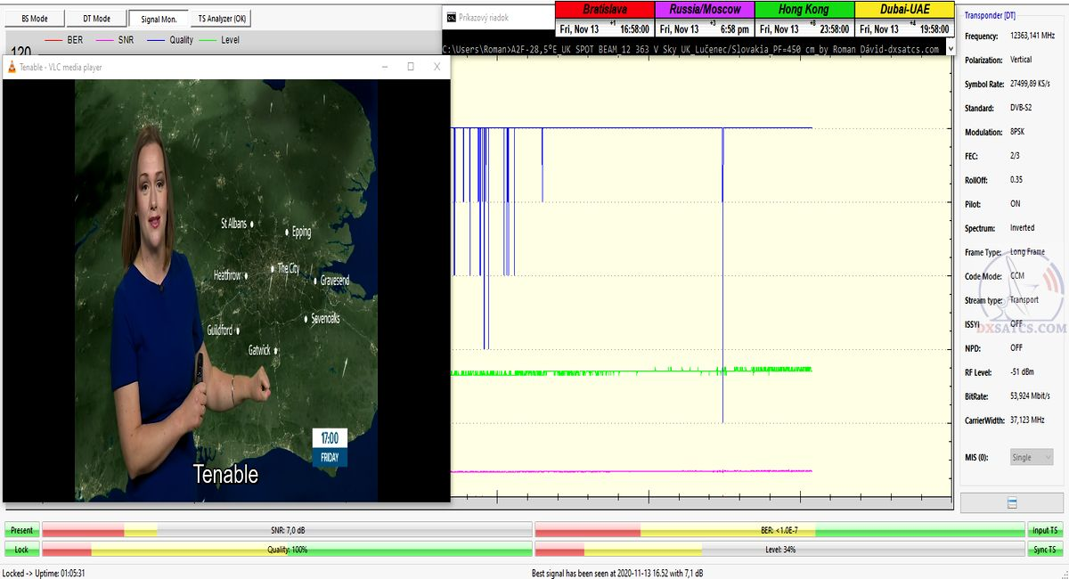 ►Obrazová a video demonštrácia príjmu z f=12 363 MHz v Lučenci : Sky Uk