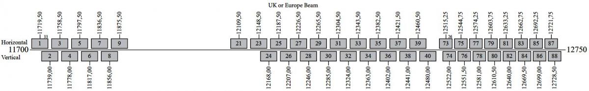 ►10 950 > 11 750 MHz-UK SPOT BEAM - V+H.pol. : frequency spectrum analysis