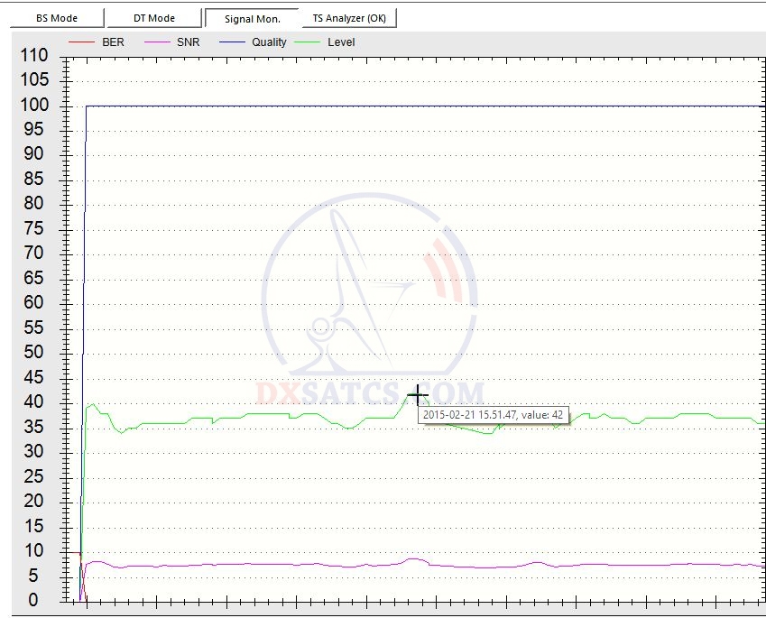 až o dva rády),ktorú autor nameral na výstupe zo sekundárneho riadianta Prodelin 3.7 m .