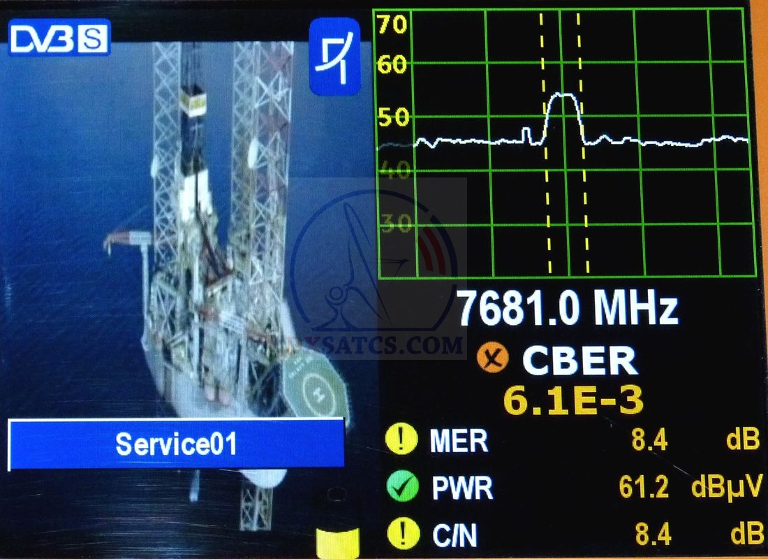 | Analyzed frequency spectrum + polarisation | 7 250 - 7 750 MHz , LHCP |