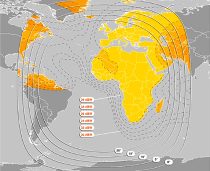 Atlantic Bird 3 at 5.0°W - panatlantic footprint : 4 031 L RTG 2 Gabon