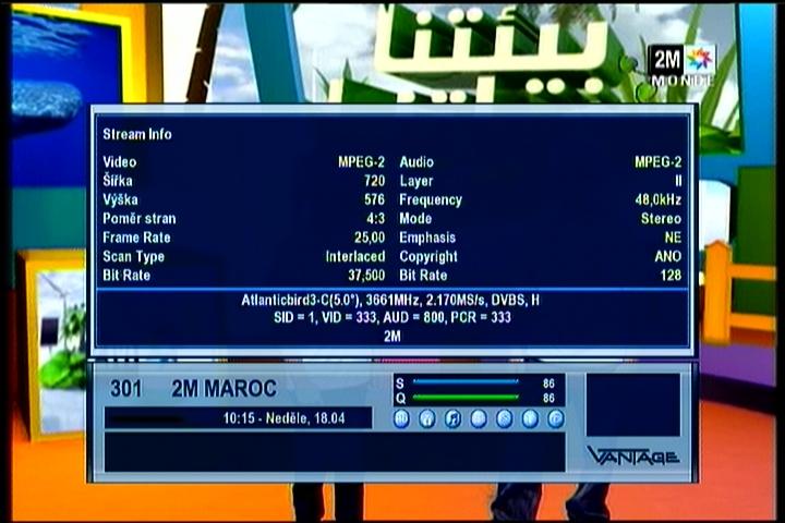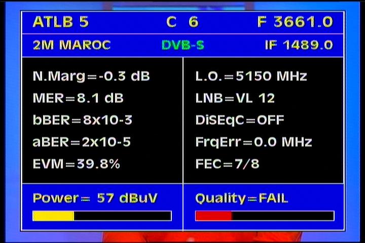 Atlantic Bird 3 at 5.0°W - panatlantic footprint : 3 661 R 2M Monde Maroc