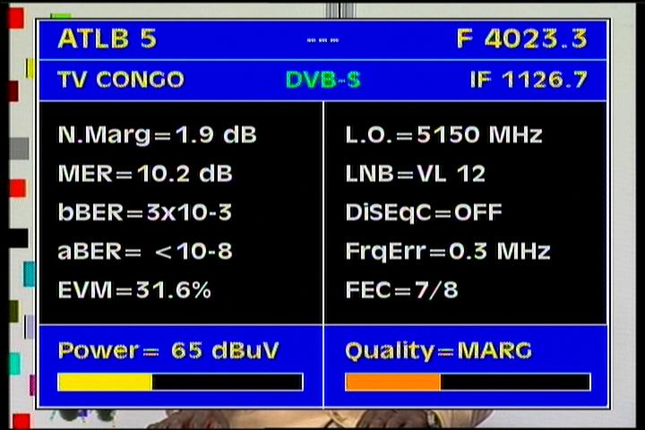 Atlantic Bird 3 at 5.0°W - panatlantic footprint : 4 023 R TV Congo