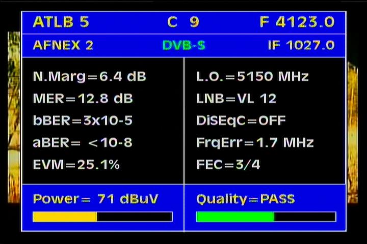 Atlantic Bird 3 at 5.0°W - panatlantic footprint : spectrum analysis & measurement results