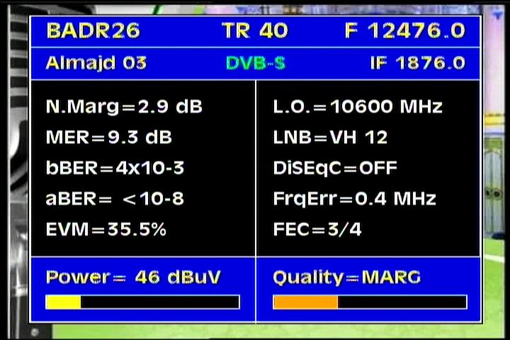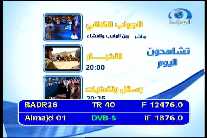 Badr 6 at 26.0°E - BSS footprint :12 476 V Al Majd Network