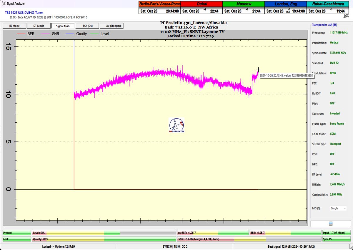 Badr 7 at 26.0°E-Northwest Africa-satellite reception-Central Europe: "Synchronous Nanocorrections" – A Technological Invention in the Practice of Satellite Reception by Roman Dávid from Lučenec