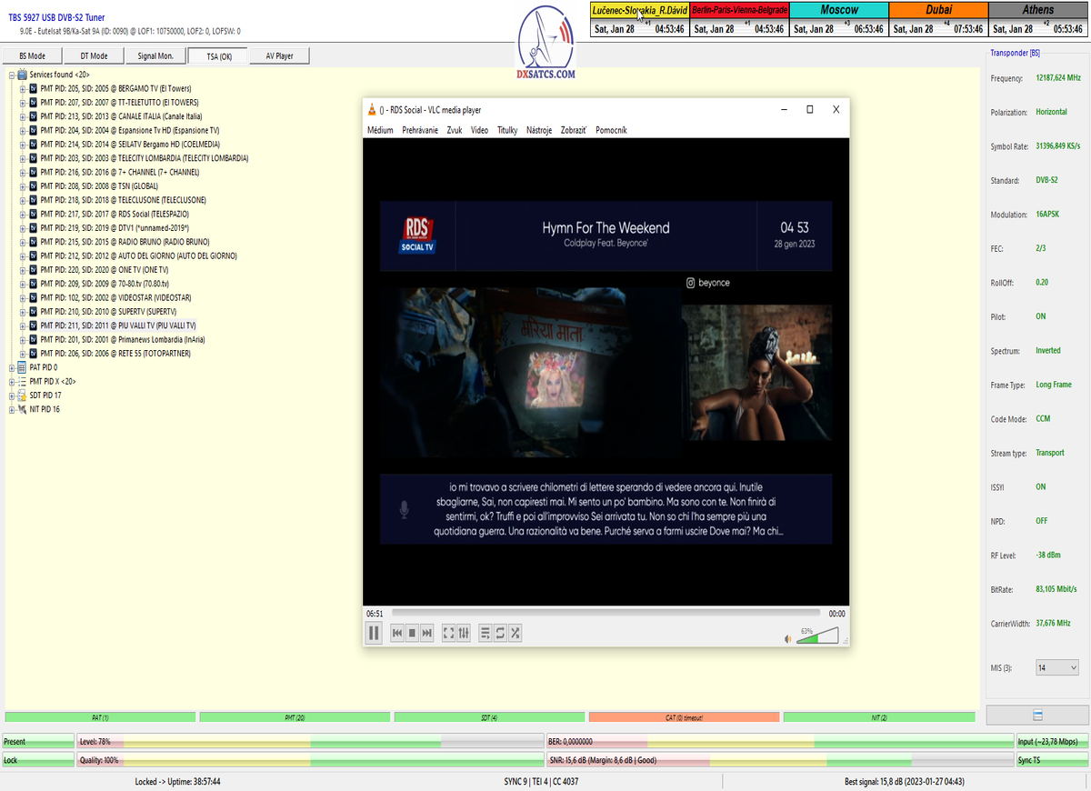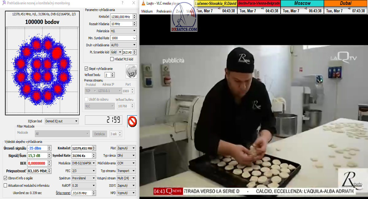 Dosiahol som nestabilný alebo z hľadiska dĺžky 24 hodín nekontinuálny priebeh LOCKU,ktorý pozostáva z dokázateľne jedného signálneho okna, ktoré je každodenne "otvorené" v minimálnej dĺžke 12 hodín od približne 01:15 do 13:30 CET,v ktorom som dokázateľne alebo inak tri dni po sebe,dosiahol plne stabilnú formu príjmu bez výpadkov a pixelácií klasifikovanú tvrdením : stabilný na 99,999-100%.