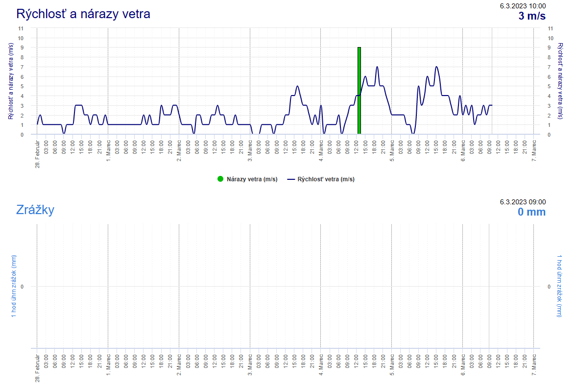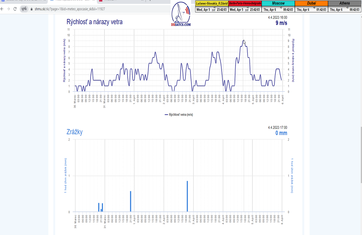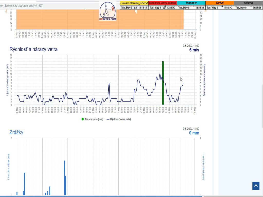-štart signálneho monitoringu : SNR=14,8 dB -          - poveternostné podmienky pri štarte : dážď -          -aktuálne údaje : úhrn zrážok a rýchlosť vetra-