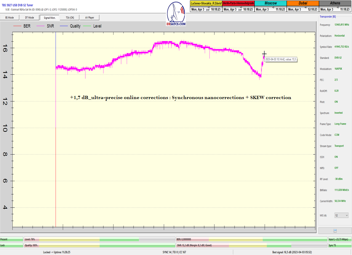-CH- : Výkon autorovej technológie "Synchrónne nanokorekcie" o 16:30 seč a následný rast kvality z 12,5 na 14+ dB_SNR