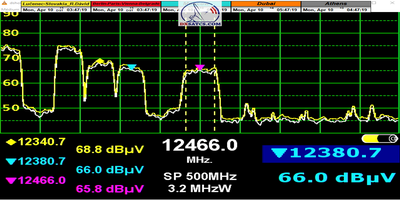 ako je tomu pri každej ďalšej z nezdielaných frekvencií.Aj napriek tomu že analyzátor Televes H60 nedokáže spracovať technológický
