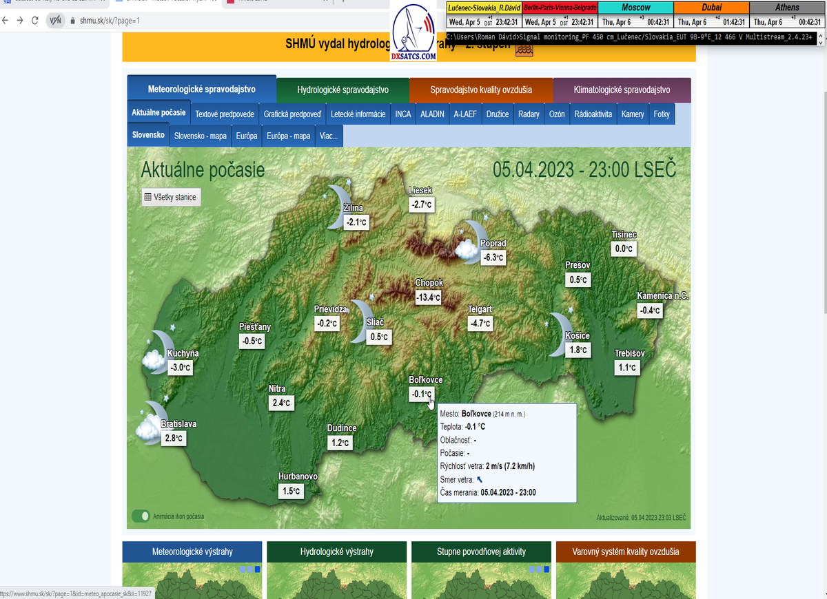 -A- : Začiatok signálneho monitoringu o 6:52 seč  a aktuálna poveternostná situácia