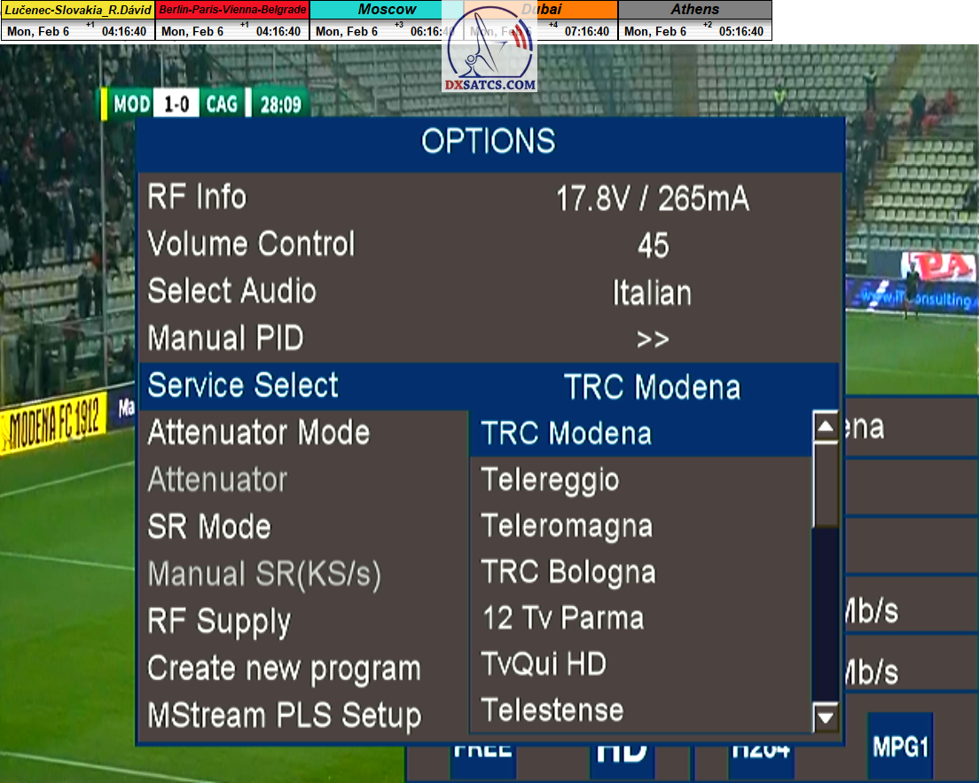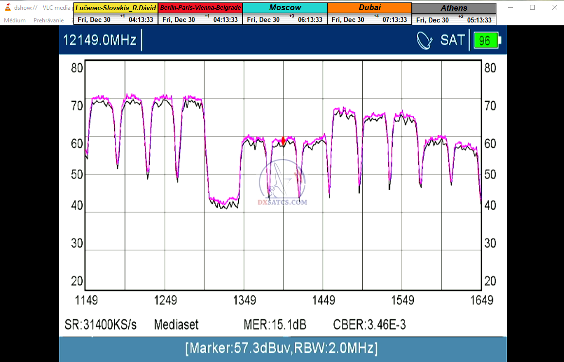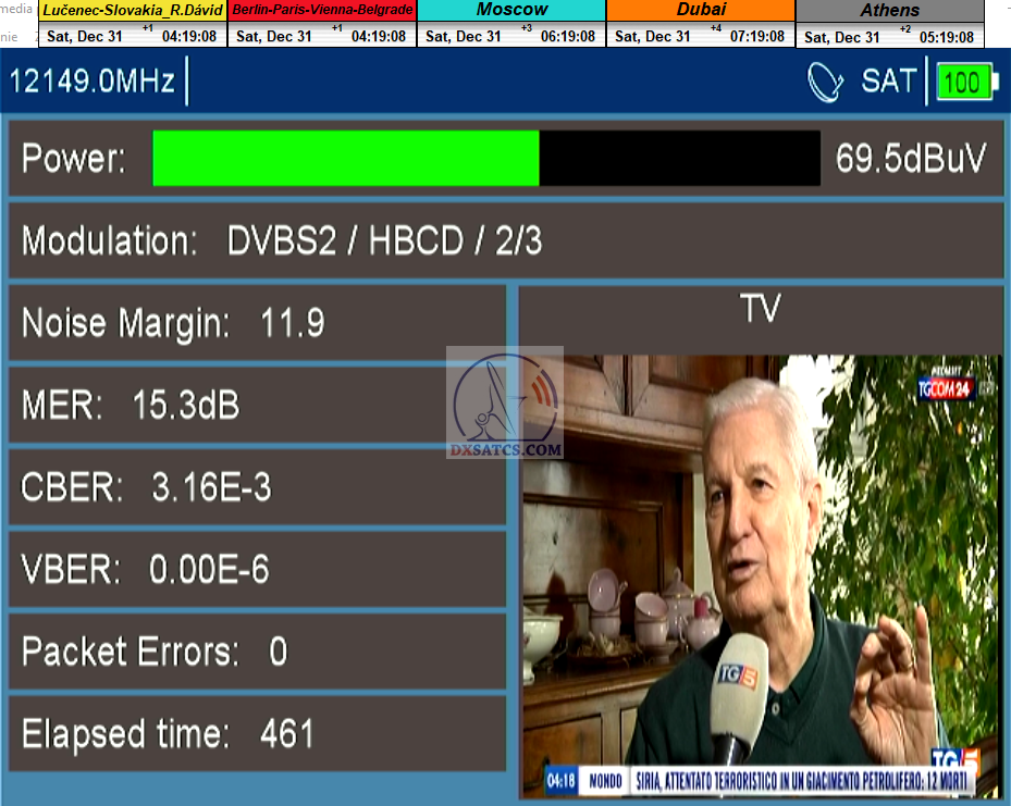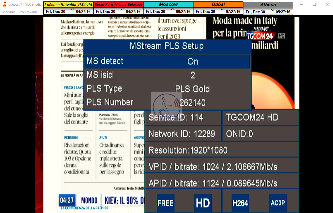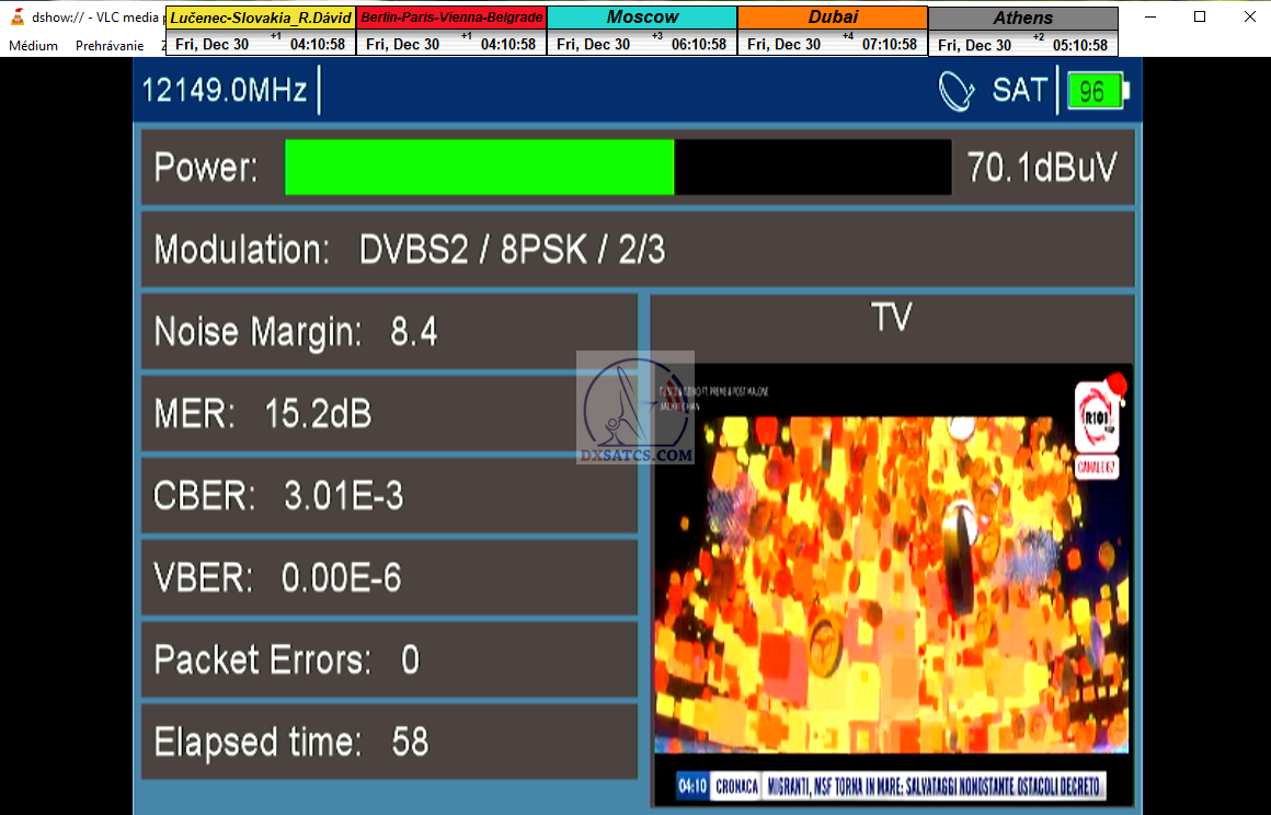 zámerne beží na pozadí meraní vysielanie TGCOM 24+R101 s kódom o aktuálnom čase,za účelom vylúčenia podvodov a verifikáciu správnosti času