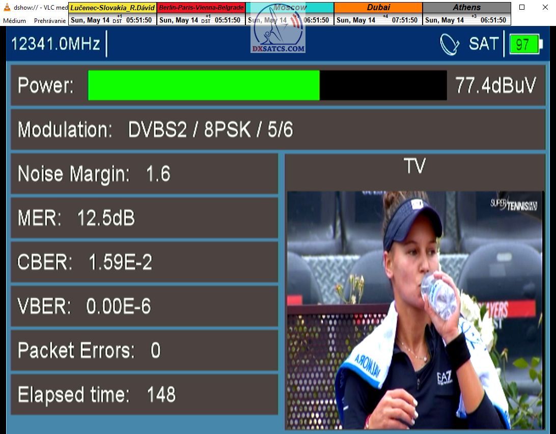 f=12 341 V Persidera (DVB-S2/8PSK/Multistream_PLS=0) : vo výkonovom moduse Jar/Leto som v praxi dokázal každodennú možnosť stabilnej