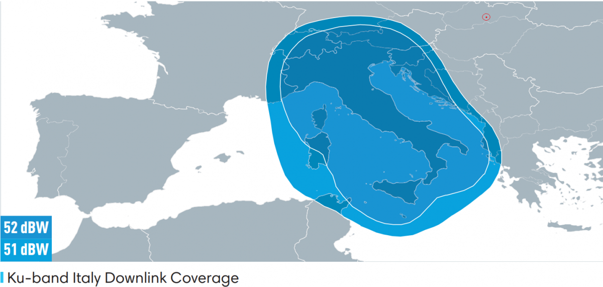 -obsahová stránka centra pre normu DVB-S2/S2X Multistream pojednáva o technických aspektoch príjmu z vyžarovacieho diagramu Italy v KU pásme,