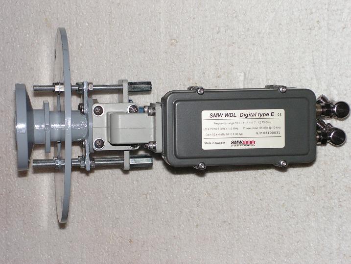 4,Jednopolaritný dvojvýstupový konvertor SMW WDL DIGITAL s oddeleným spracovaním spodnej a vrchnej časti pásma KU s presne definovaným rozptylom kmitočtu oscilátora LOF STABILITY v rozsahu +/- 1,5 MHz s fázovým šumom pri f=10 kHz len -95dBc .