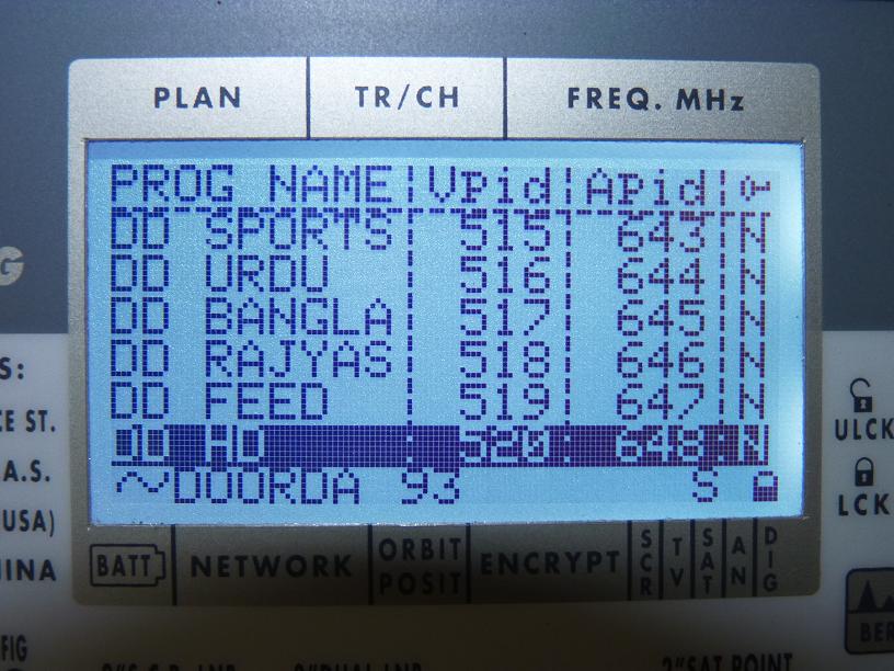 --- 3 725 H DD Doordarshan , 3 885 H SUN Network , 3 925 H DD Doordarshan ---