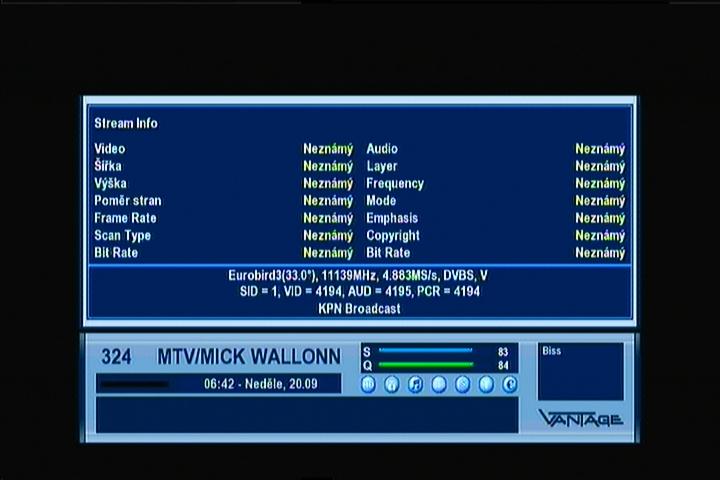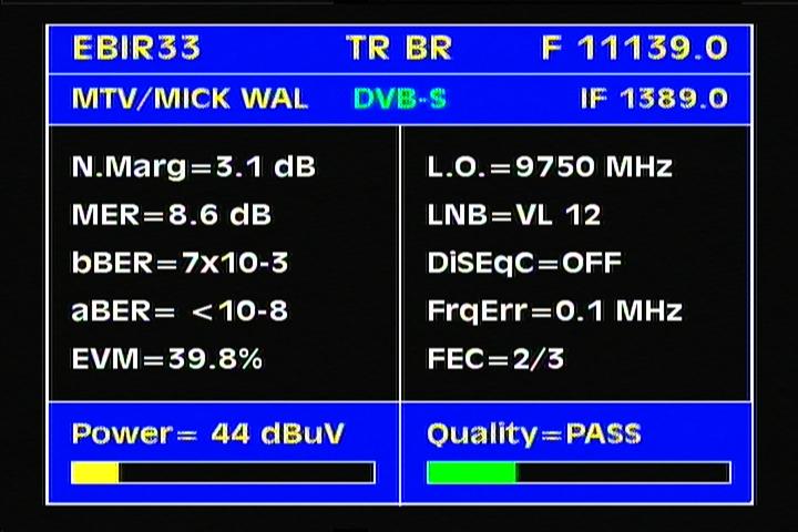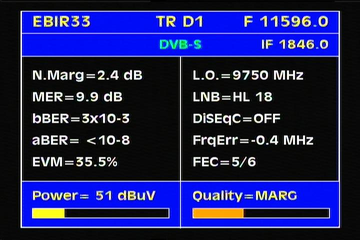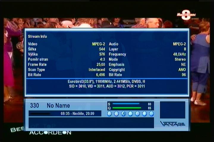 Eurobird 3 at 33,0°E : percent Q & stream data