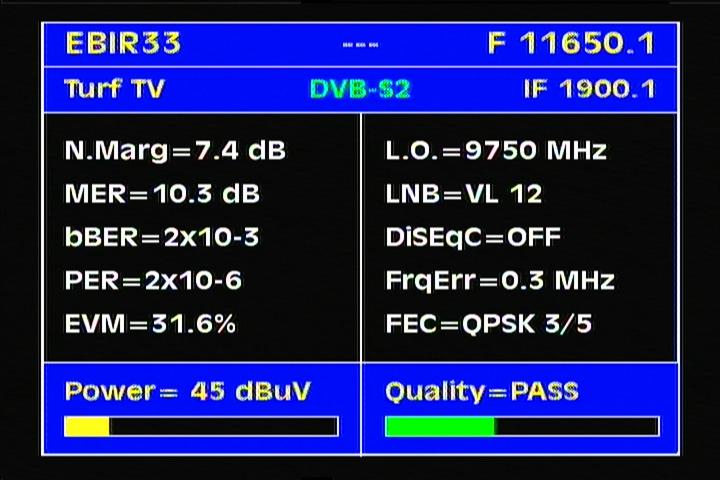 Eurobird 3 at 33,0°E - SPOT B : 11 650 V DVB-S2 Turf TV