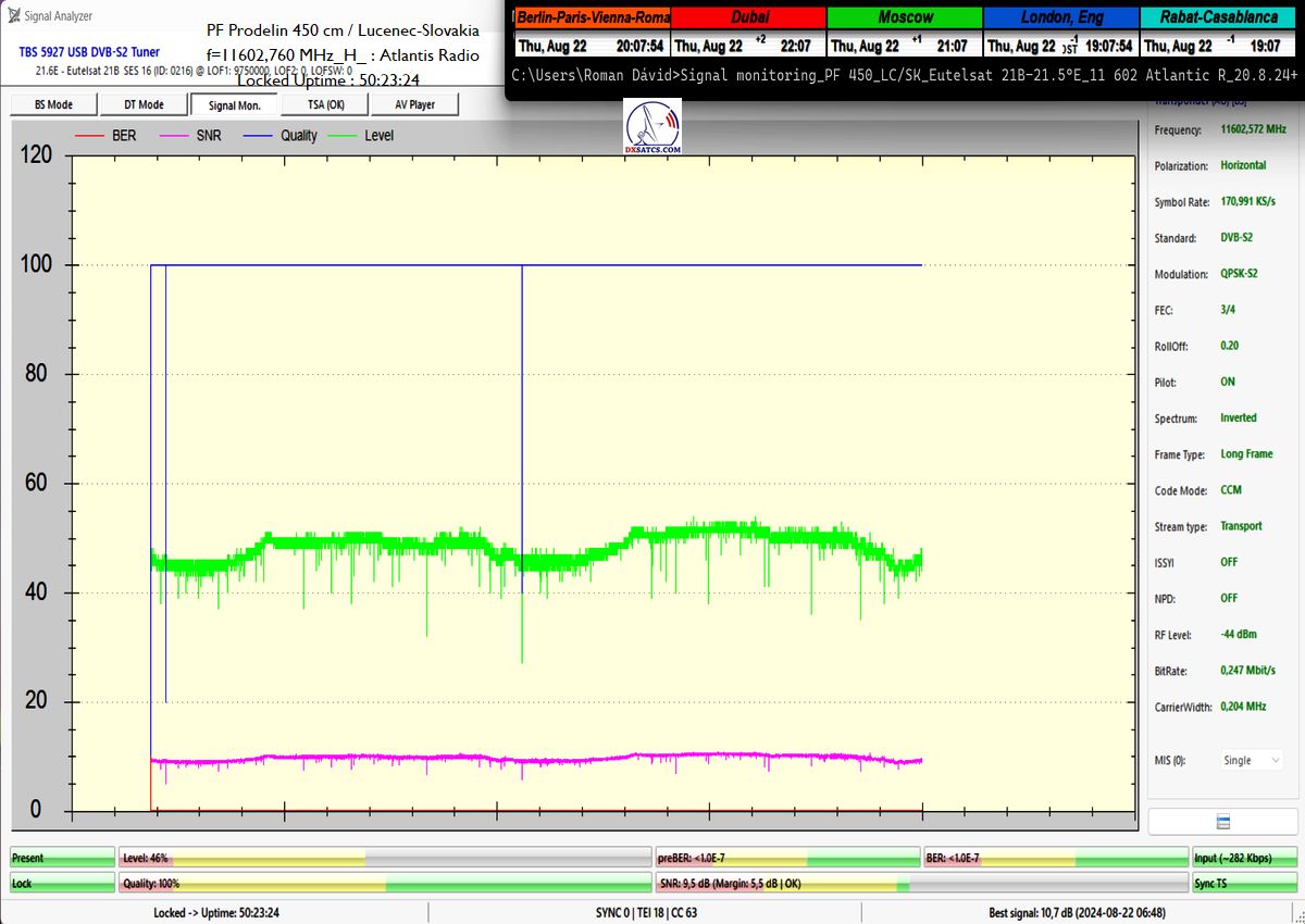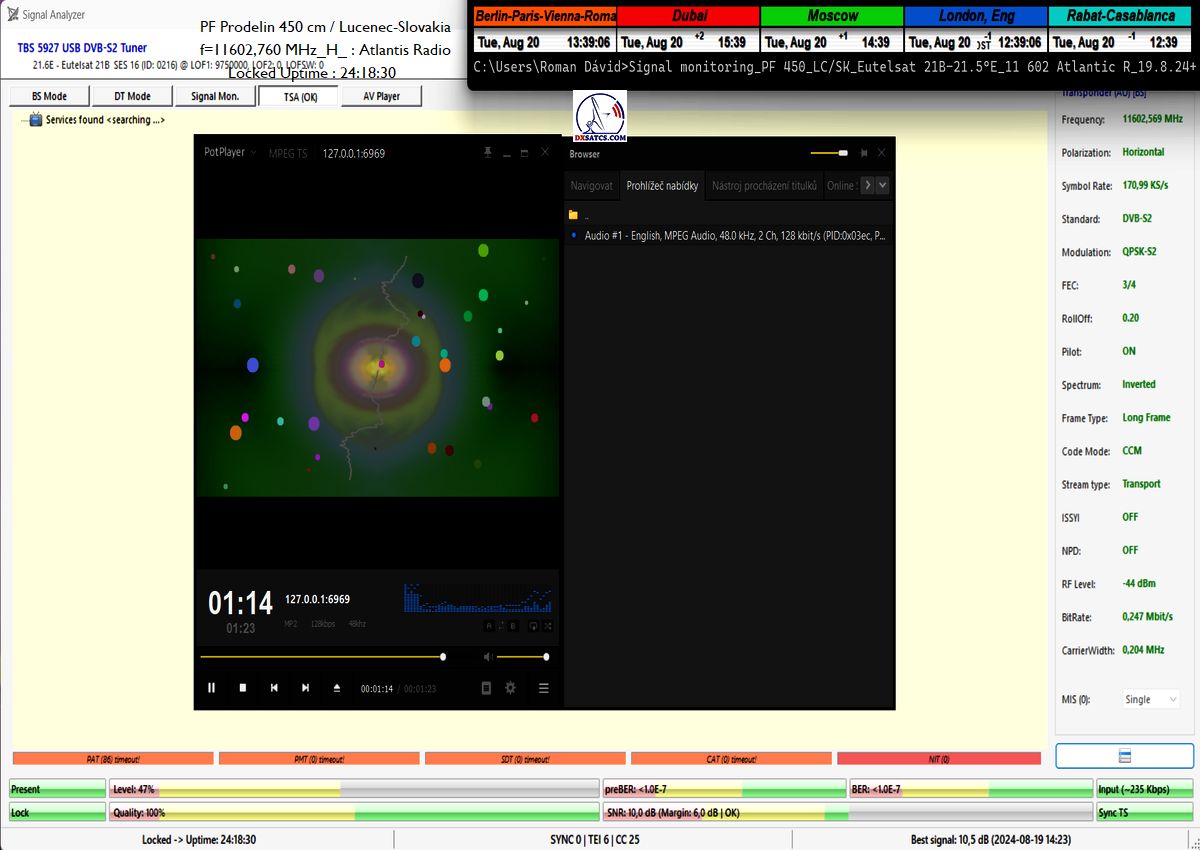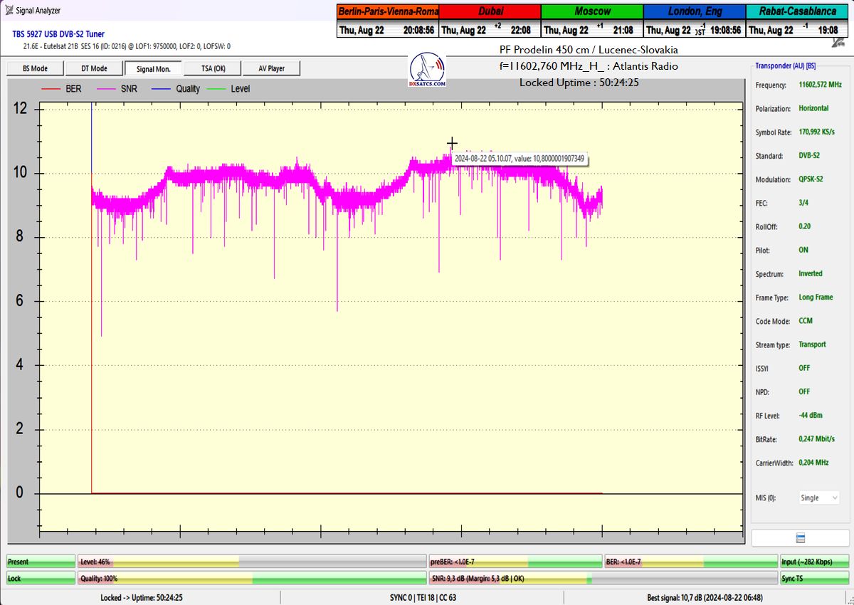 ►+50 hodín_ Priebežný stav v signálnom monitoringu dňa 22.8.2024 a online video ukážka z vysielania Rádia Atlantic_TSA OK