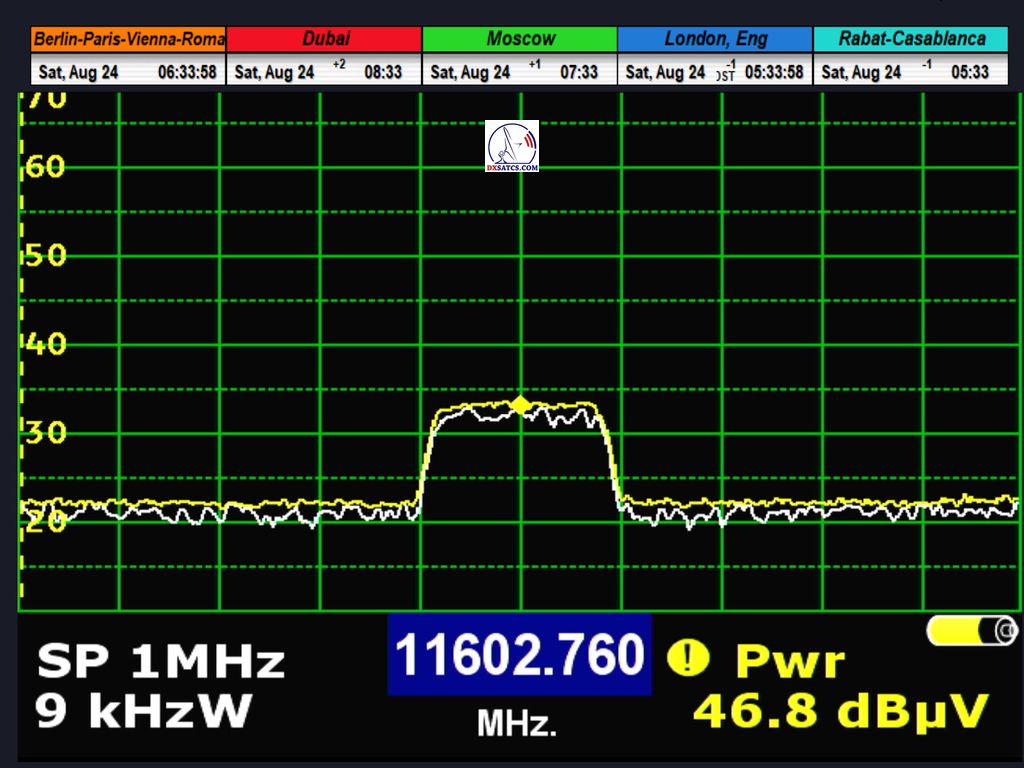SPAN=1 MHz : 11 599,250>11 599,530>11 599,760 MHz >11 602,760 MHz