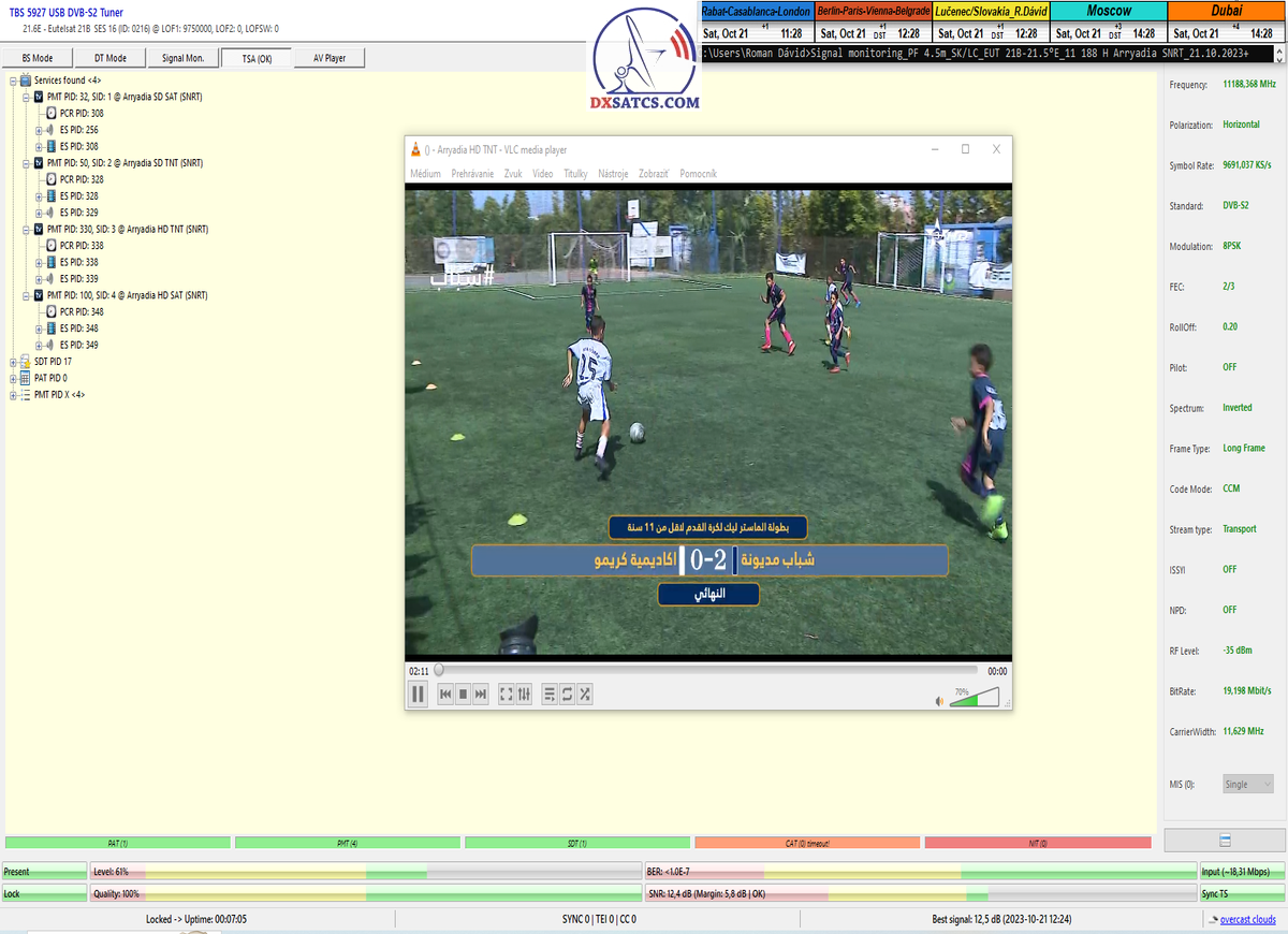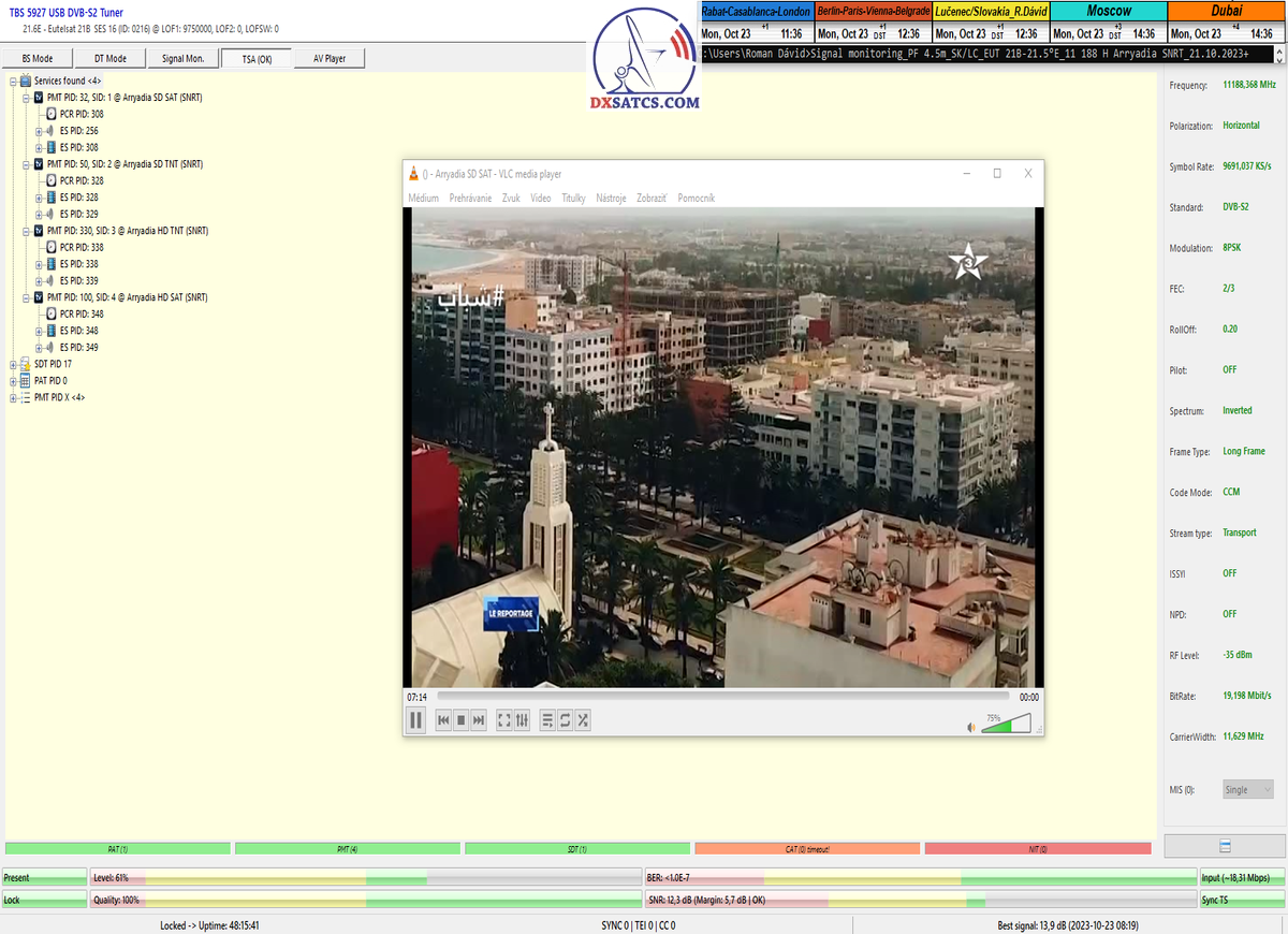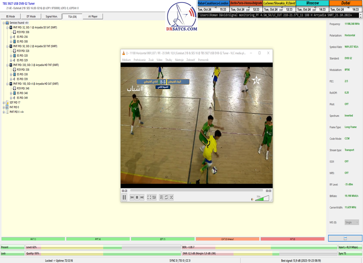 MONITOROVANÁ FREKVENCIA MAROCKÉHO PROVAJDERA SNRT Arryadia na f=11 188,4 MHz