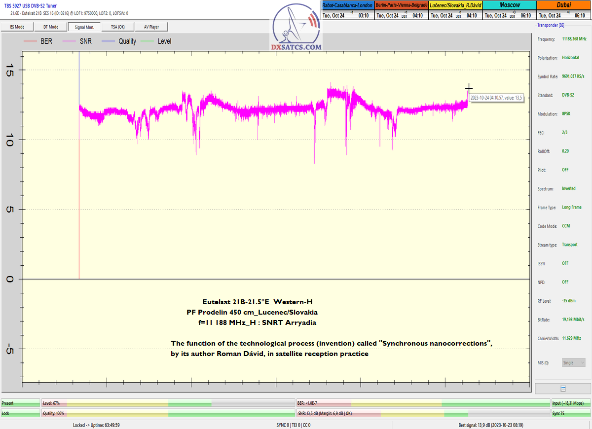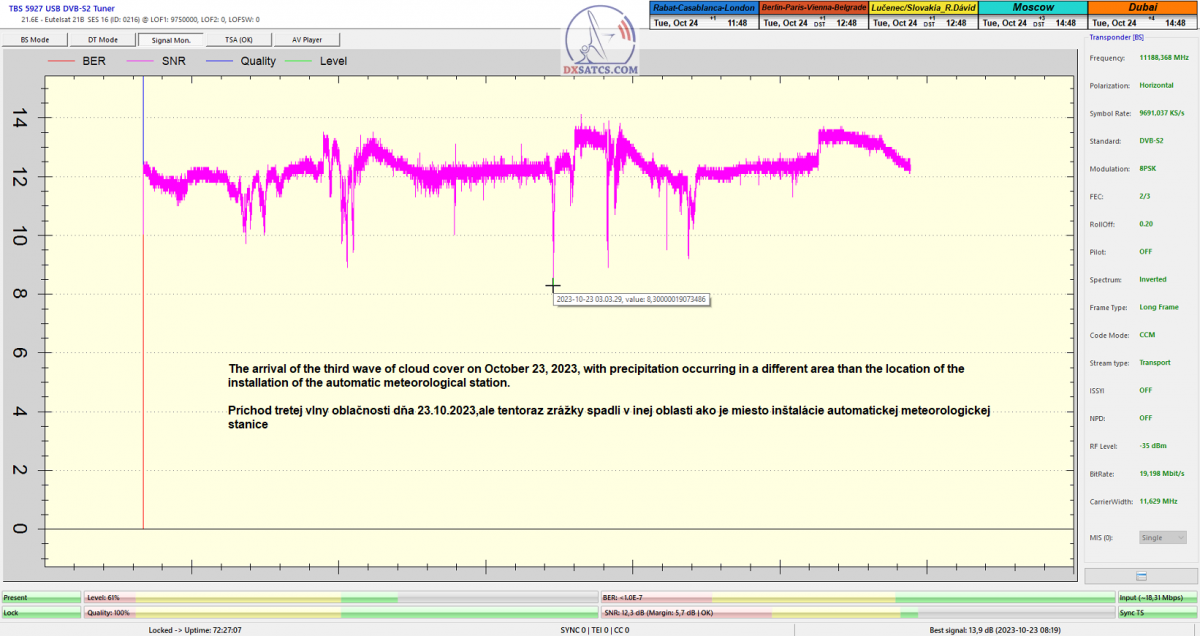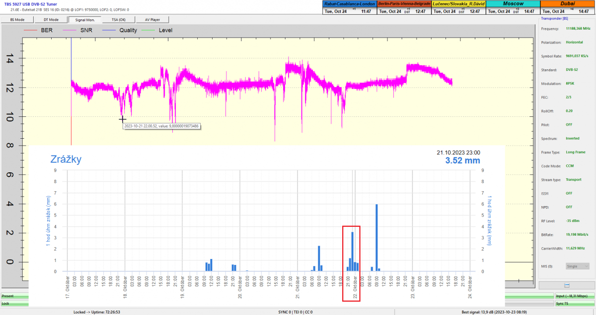 ►Analýza signálneho monitoringu od 21.10 do 24.10.2023 : dosiahol som dokázateľne exemplárny stav kvality príjmu na f=11 188 MHz