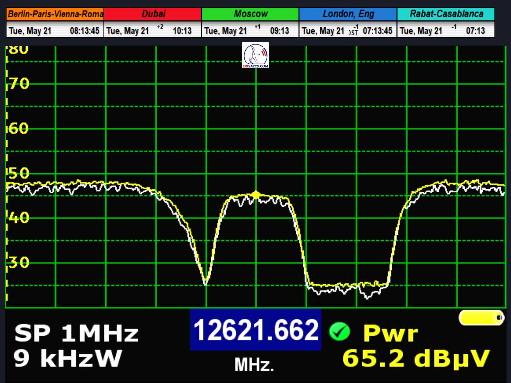 Im Frequenzspektrum des Transponders Nummer FU6 von 12.621,662 MHz bis 12.622,1 MHz_V habe ich eine Quantifizierung seiner aktuellen Belegung durchgeführt,zusammen mit einer kontinuierlichen Signalüberwachung jeder Trägerfrequenz für eine Mindestdauer von 60 Minuten bis zu 25 Stunden.Dies umfasst eine detaillierte Analyse des heute untersuchten Radio Tendance Ouest mit einem Symbolratenparameter von SR=144 ksym/s bei f=12.662,661 MHz.