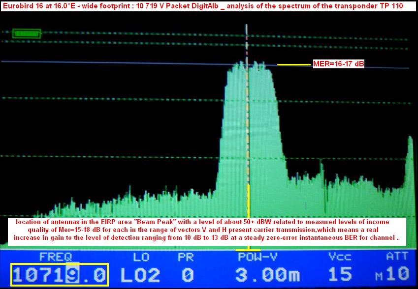 Eutelsat W2 & Eurobird 16 at 16.0°E - Wide footprint : the spectrum analysis of the vector V