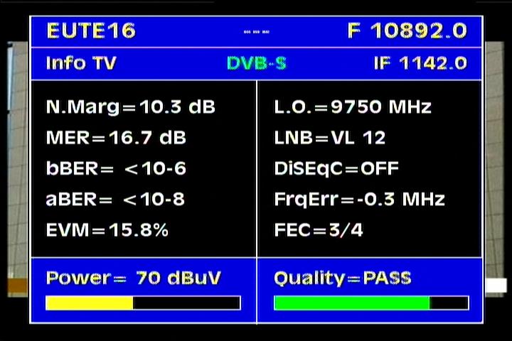 Eutelsat W2 & Eurobird 16 at 16.0°E - wide footprint : measurements at the center Lučenec_central Slovakia