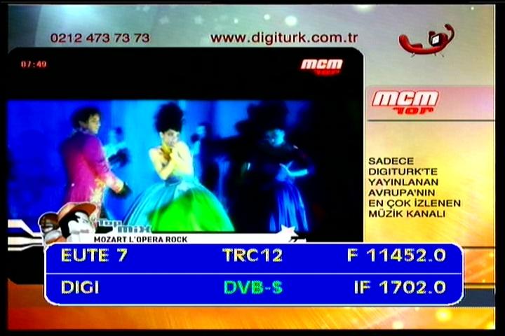 Eutelsat W3A at 7.0°E - Europe B footprint : 11 452 V packet Digiturk