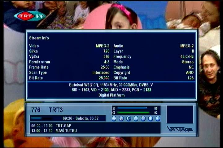 Eutelsat W3A at 7.0°E - Europe B footprint : 11 534 V packet Digiturk