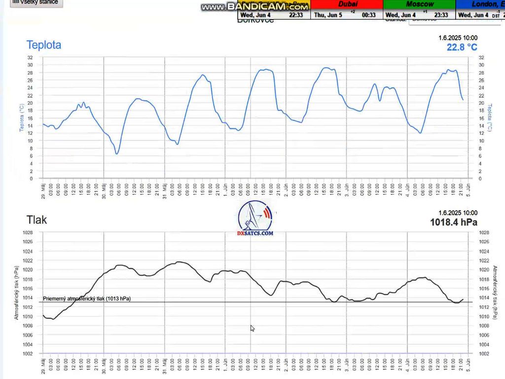 ►DE_Auf Grundlage von Meteogrammen der Quelle shmu.sk kann ich bestätigen, dass während der Durchführung des Signalmonitorings über Lučenec überwiegend wolkenloser Himmel herrschte. Nur am Abend des 1. Juni 2025 zog ein Gewittersystem über mein Gebiet, begleitet von Regenschauern — belegt durch Nachweise