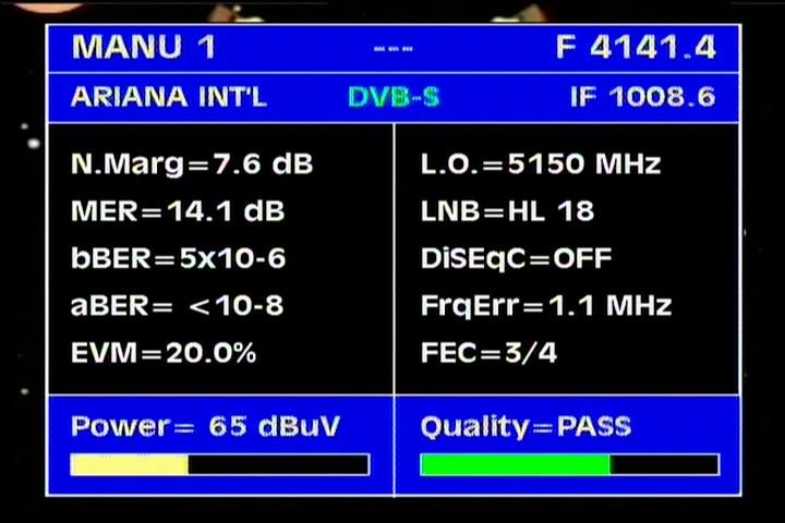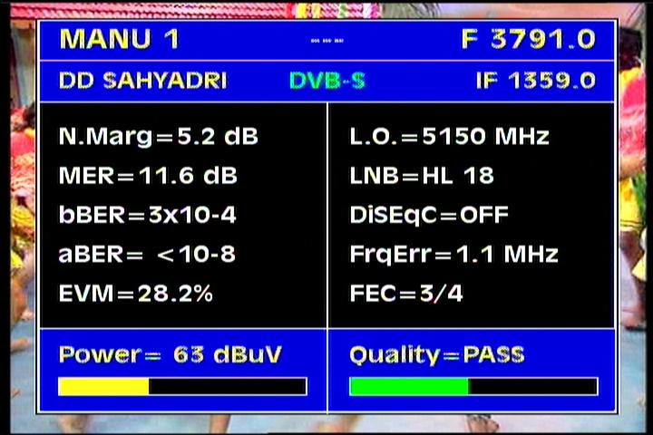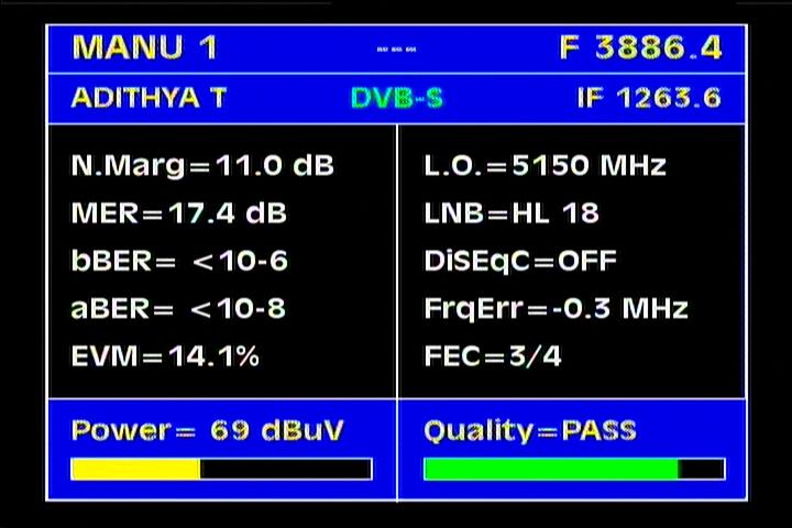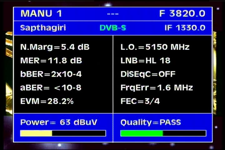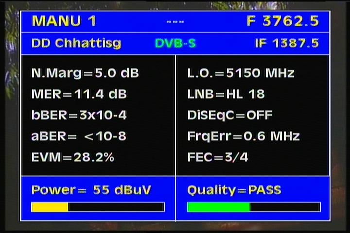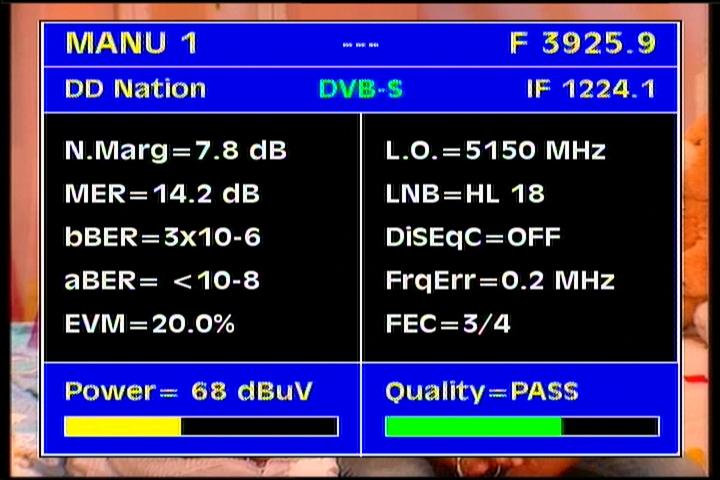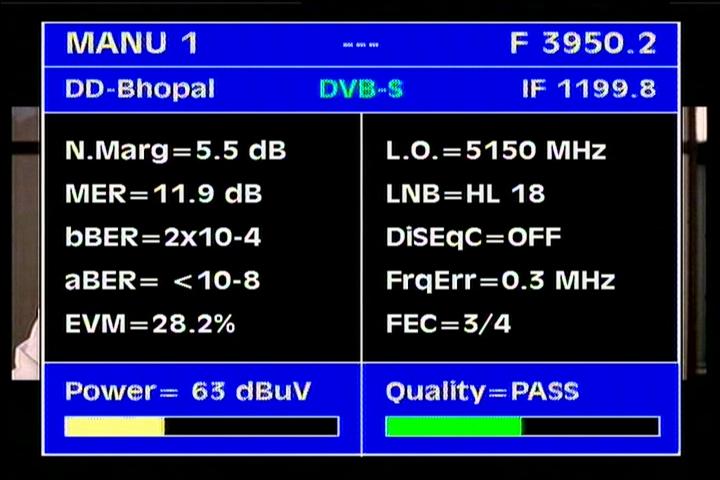 Insat 4B : 3 885 H Packet SUN DTO India / qualitative peak MER=17.4 dB